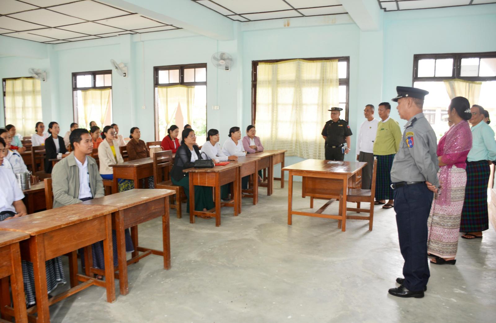 ထို့နောက် အခမ်းအနားအပြီးတွင် သက်ဆိုင်ရာဘာသာရပ်များအလိုက် သင်ကြားပို့ချမည့် စာသင်ဆောင်များတွင် သင်တန်းသား၊ သင်တန်းသူများအား သင်တန်းနည်းပြများက စာတွေ့လက်တွေ့ဖြင့် သင်ကြားပို့ချနေမှုအခြေအနေများကို တက္ကသိုလ်ပါမောက္ခချုပ်၊ ခရိုင်စီမံခန့်ခွဲရေးနှင့်အုပ်ချုပ်ရေးကော်မတီ ခေတ္တဥက္ကဋ္ဌနှင့် ခရိုင်/မြို့နယ်မှ သက်ဆိုင်ရာတာဝန်ရှိသူများ၊ ပါမောက္ခ(ဌာနမှူး)တို့က လိုက်လံကြည့်ရှုစစ်ဆေးခဲ့ကြကြောင်း သိရသည်။