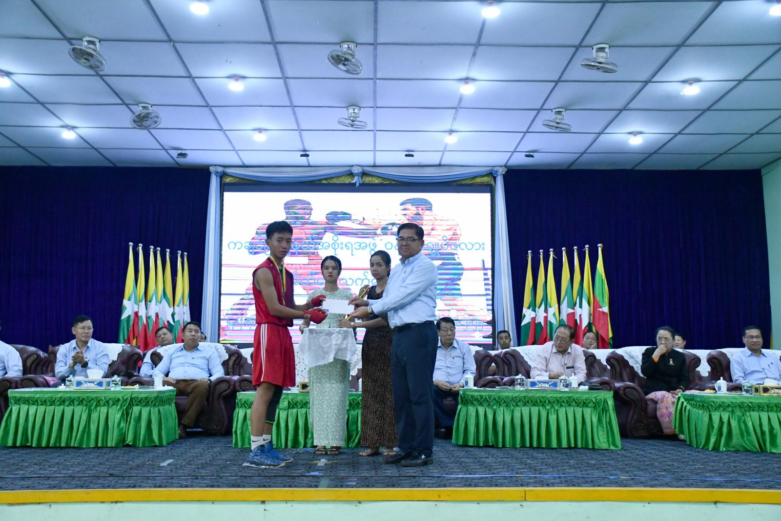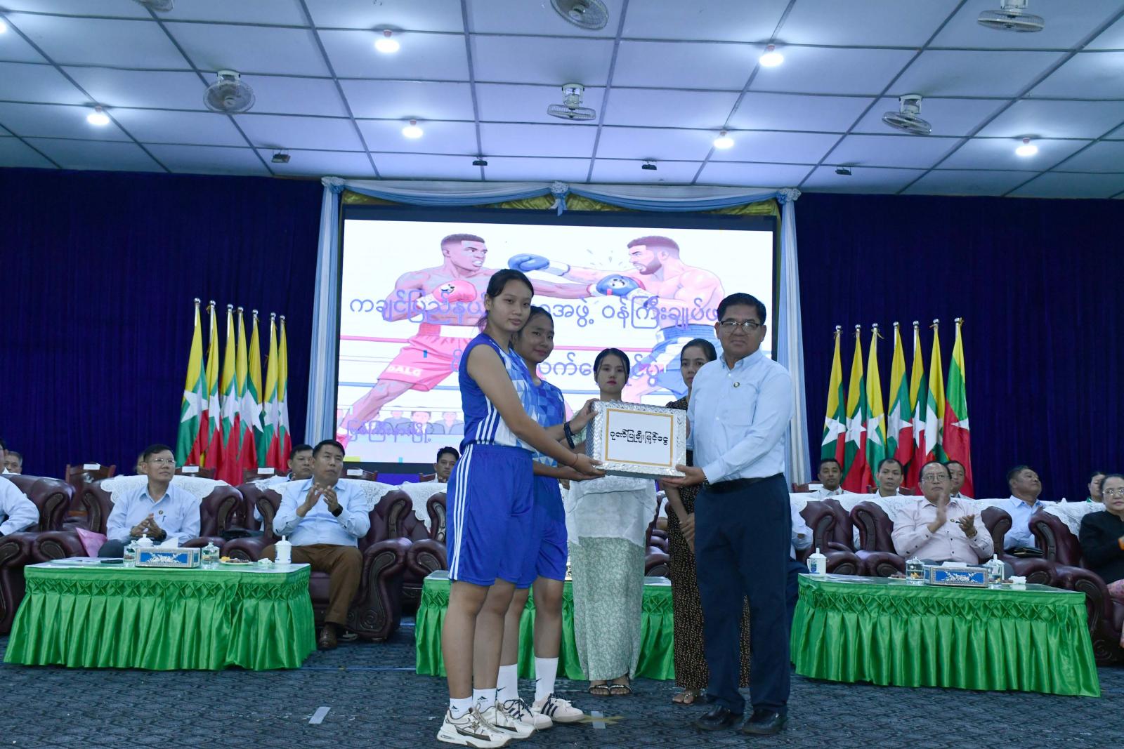 ယင်းနောက် ပြည်နယ်ဝန်ကြီးချုပ်နှင့် တာဝန်ရှိသူများသည် မြစ်ကြီးနားမြို့ ပြည်သူ့အားက စားကွင်းအတွင်းရှိ မိုးလုံလေလုံအားကစားခန်းမ၌ မျိုးဆက်သစ် လူငယ်လက်ဝှေ့ အားကစားသမားများပေါ်ထွန်းလာစေရေး ကျင်းပသည့် ၂၀၂၅ ခုနှစ် ပြည်နယ်ဝန်ကြီးချုပ်ဖလား ဖိတ်ခေါ် လက်ဝှေ့ပြိုင်ပွဲဖွင့်ပွဲသို့ တက်ရောက်သည်။ အခမ်းအနားတွင် ပြည်နယ်ဝန်ကြီးချုပ်က လက်ဝှေ့ပြိုင်ပွဲ အတွက် ချီးမြှင့်ထောက်ပံ့ငွေကျပ်သိန်း ၃၀ နှင့် လက်ဝှေ့ဆပ်ကော်မတီ တာဝန်ရှိသူများ၊ ပါဝင်ကူညီ ပံ့ပိုးပေးကြသူများအား ဂုဏ်ပြုမှတ်တမ်း လွှာများကို ပေးအပ်ချီးမြှင့်ခဲ့ပြီး ပြည်နယ်လက်ဝှေ့ဆပ်ကော်မတီမှ သင်ကြားလေ့ကျင့်ပေးလျက်ရှိသော လူငယ်လက်ဝှေ့သင်တန်းသား/ သင်တန်းသူများက လက်ဝှေ့လေ့ကျင့်ခန်းများဖြင့် သရုပ်ပြသမှုကို လည်းကောင်း၊ Grace အကအဖွဲ့က ကပြဖျော်ဖြေမှုကို လည်းကောင်း ကြည့်ရှုအားပေးခဲ့ကြပြီး လက်ဝှေ့ပြိုင်ပွဲ အဖွင့်ပွဲစဉ်အဖြစ် ဖြိုးဝေလင်း (မန်ခိန်)နှင့် မိုက်ကယ်ဇော်ခေါင်(ဒူကထောင်)တို့၏ ယှဉ်ပြိုင်ထိုးသတ်မှုကို နယ်စပ်ဒေသတိုင်းရင်းသားလူငယ်များ ဖွံ့ဖြိုးတိုးတက်ရေးသင်တန်းကျောင်းမှ ကျောင်းသူများ၊ လက်ဝှေ့ဝါသနာရှင်ပရိသတ်များနှင့်အတူ ကြည့်ရှုအားပေးခဲ့ကြကာ အနိုင်ရရှိသည့် လက်ဝှေ့အားကစားသမားအား ဂုဏ်ပြုဆုငွေများကို ပေးအပ်ချီးမြှင့်သည်။