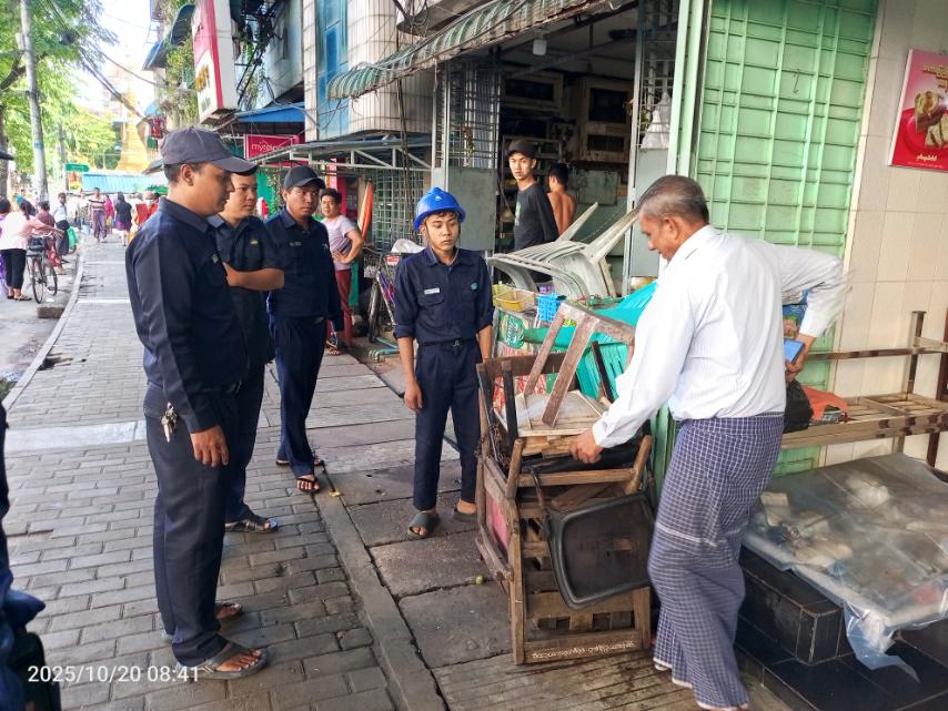 ပုဇွန်တောင်မြို့နယ် အမှတ်(၇)ရပ်ကွက်အတွင်း အထက်ပုဇွန်တောင်လမ်းရှိ လိုင်စင်ရှိ ဆိုင်/လုပ်ငန်းများမှ ကော်မတီပိုင်လမ်းနယ်အတွင်း ကျူးကျော်ခင်းကျင်းရောင်းချမှုမရှိရေးကို ယနေ့နံနက်ပိုင်းက လိုက်လံစစ်ဆေးခဲ့ကာ အထက်ပုဇွန်တောင်လမ်းရှိ ကော်မတီပိုင်လမ်းနယ်အတွင်း အဖီအစွယ်ကျူး၊ လမ်းနယ်ကျူးများအား ကျူးကျော်ခင်းကျင်းရောင်းချမှု မရှိစေရေးနှင့် လမ်းဘေးစျေးသည်များရောင်းချမှု မရှိစေရေး လိုက်လံစစ်ဆေး ဆောင်ရွက်ပေးခဲ့သည်။