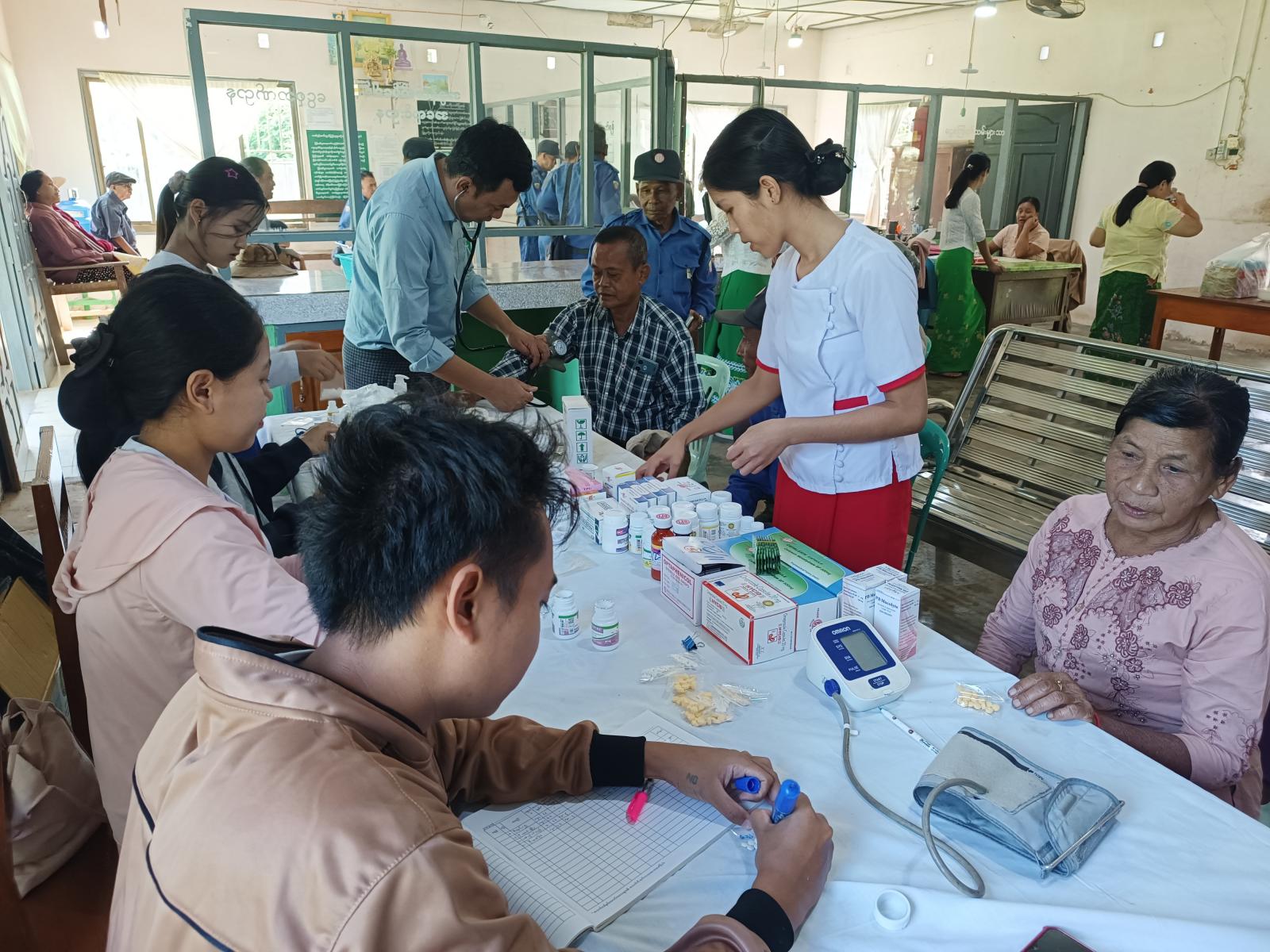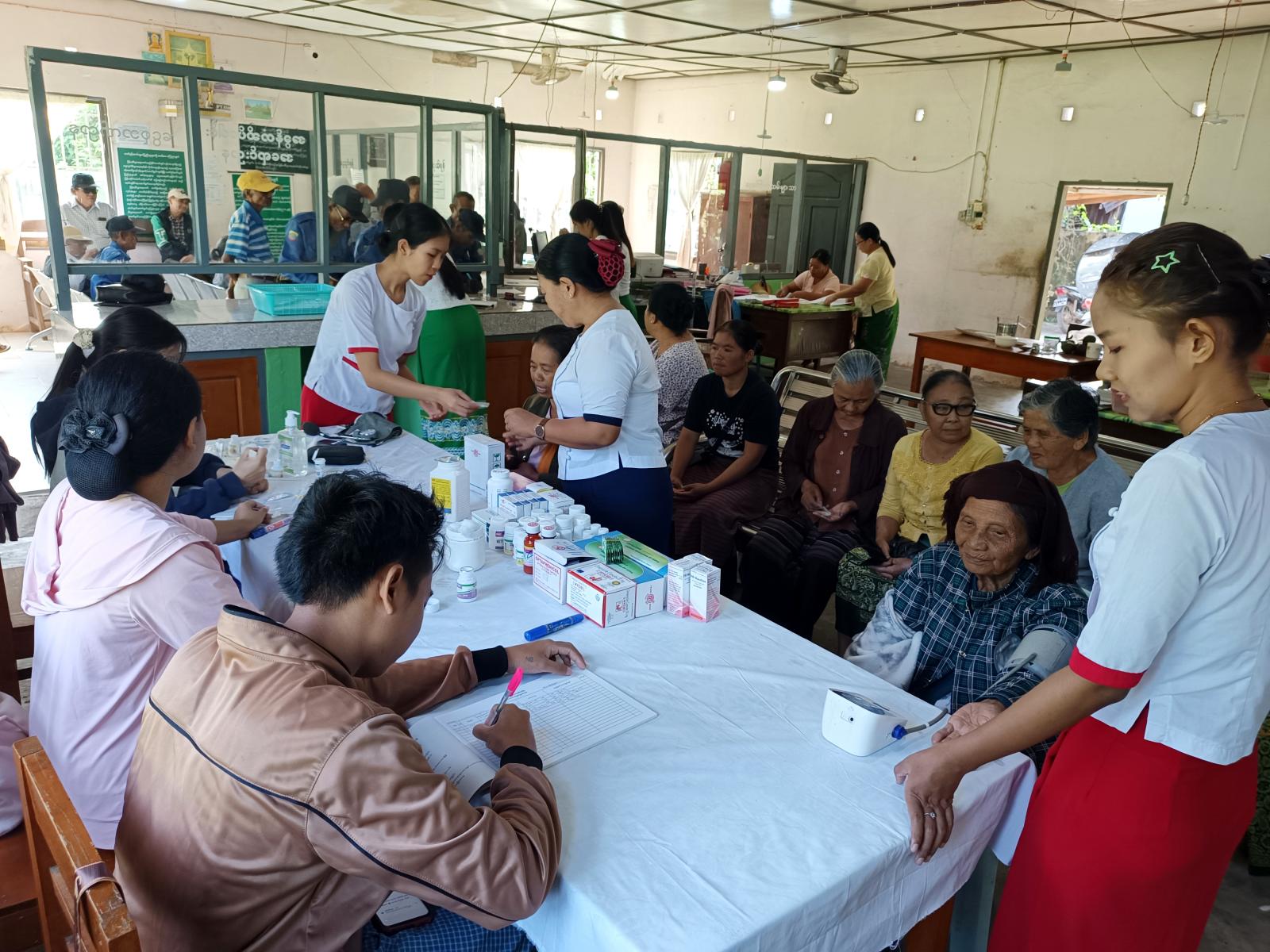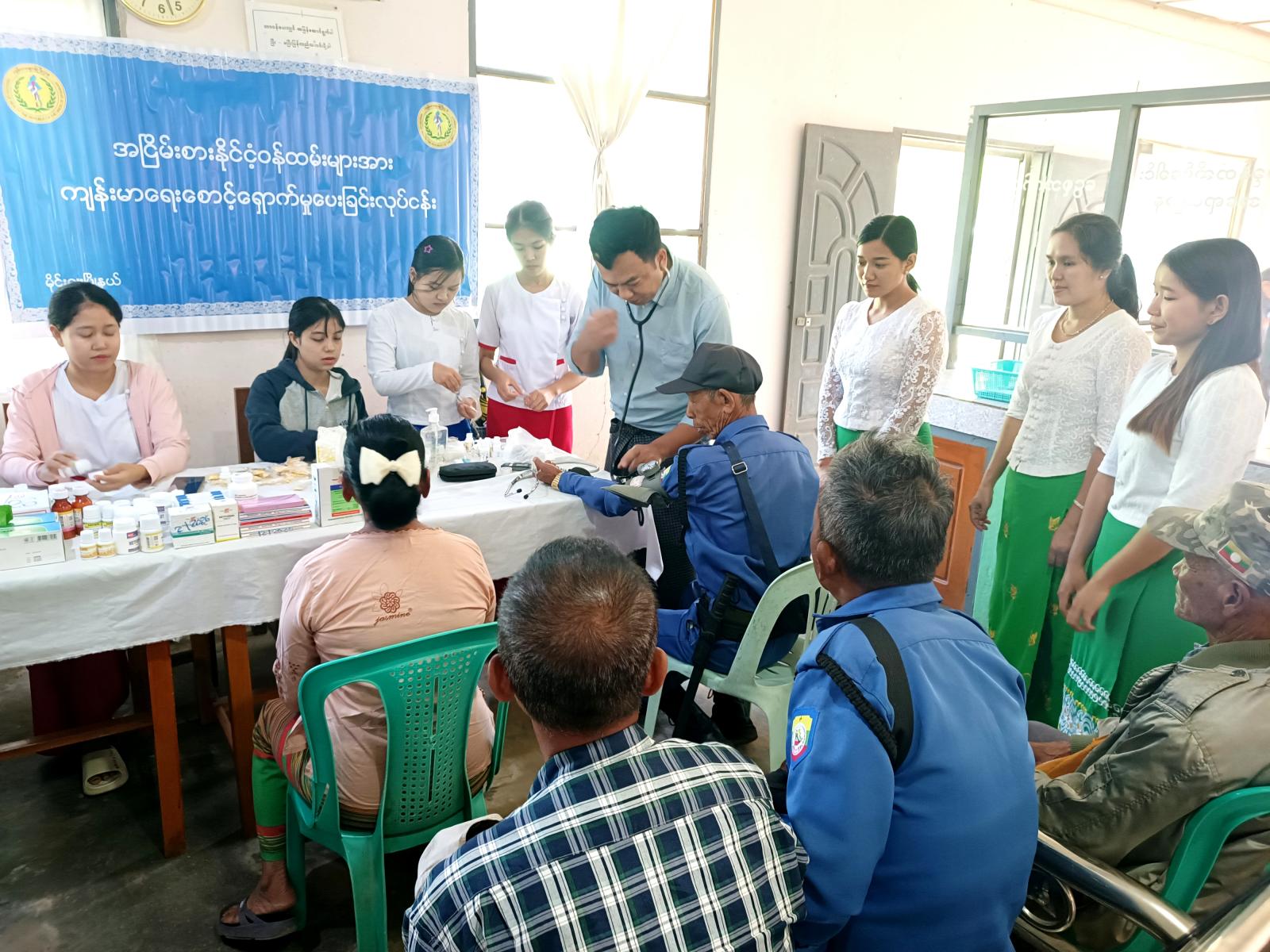 ထိုသို့ ဆောင်ရွက်ရာတွင် မြို့နယ်ဆရာဝန်ကြီး ဒေါက်ကျော်ဇင်ထွန်း ဦးဆောင်၍ သူနာပြု ဆရာမများ၊ ကျန်းမာရေးဝန်ထမ်းများက နိုင်ငံ့ဝန်ထမ်းပင်စင်စားများအား မှတ်တမ်းစာရင်းရေးသွင်း၍ သွေးပေါင်ချိန်ခြင်း၊ ဆီးချို၊ သွေးချိုစစ်ပေးခြင်း၊ သွေးတွင်းအောက်ဆီဂျင်တိုင်းတာ ခြင်းများ ဆောင်ရွက်ပေးခဲ့ပြီး အထွေထွေရောဂါလူနာများအား လိုအပ်သည့် ဆေးဝါးကုသမှုများ ဆောင်ရွက်ပေးခဲ့ကြောင်း သိရသည်။