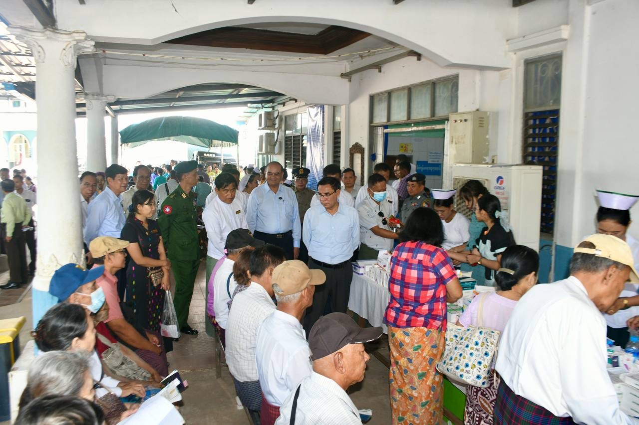 ရှေးဦးစွာ ပဲခူးတိုင်းဒေသကြီး ဝန်ကြီးချုပ် ဦးမျိုးဆွေဝင်းနှင့် အစိုးရအဖွဲ့ဝင် ဝန်ကြီးများတို့သည် ပဲခူးမြို့ ခုတင်(၅၀၀)ဆံ့ အထွေထွေရောဂါကုဆေးရုံကြီးတွင် ကျန်းမာရေးစောင့်ရှောက်မှု လာရောက်ခံယူနေကြသည့် အငြိမ်းစားနိုင်ငံ့ဝန်ထမ်းများအား ကျန်းမာရေးဝန်ထမ်းများက စမ်းသပ်စစ်ဆေးကုသပေးနေမှု၊ ဌာနဆိုင်ရာများ၊ မြို့မိမြို့ဖများ၊ လူမှုရေးအသင်းအဖွဲ့များနှင့် ပရဟိတအဖွဲ့အစည်းများမှ ပူးပေါင်းပါဝင် ကူညီဆောင်ရွက်ပေးနေမှုနှင့် ရေသန့်၊ ကော်ဖီနှင့်အာဟာရမုန့်များ အခမဲ့တိုက်ကျွေးနေမှုများအား လိုက်လံကြည့်ရှု့ခဲ့ပြီး ကျန်းမာရေးစောင့်ရှောက်မှု လာရောက်ခံယူကြသည့် အငြိမ်းစားနိုင်ငံ့ဝန်ထမ်းများအား ရင်းရင်းနှီးနှီး လိုက်လံနှုတ်ဆက် အားပေးစကားပြောကြားပြီး လစဉ်အငြိမ်းစားနိုင်ငံ့ဝန်ထမ်းများအား စဉ်ဆက်မပြတ် ကျန်းမာရေးစောင့်ရှောက်မှုပေးနိုင်ရေးနှင့် ဆေးဝါးလိုအပ်ချက်မရှိစေရေး ဖြည့်ဆည်းဆောင်ရွက်ပေးခဲ့သည်။