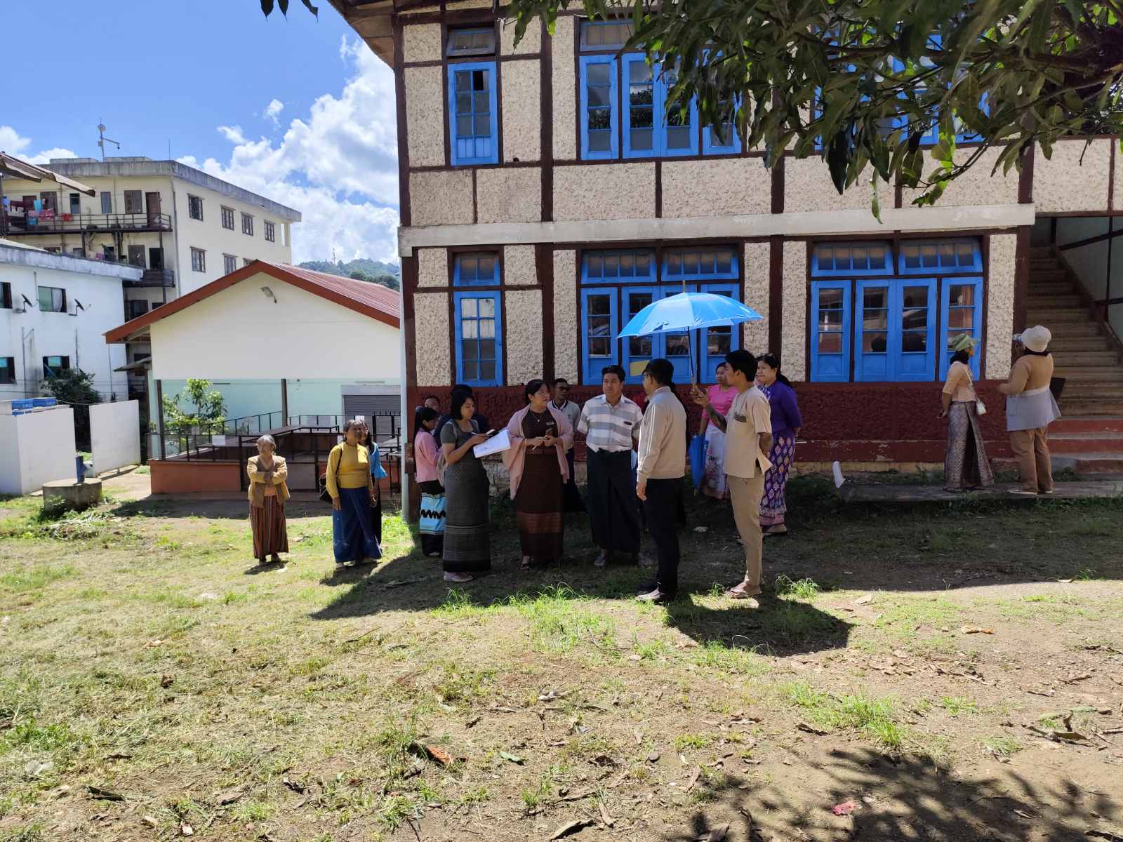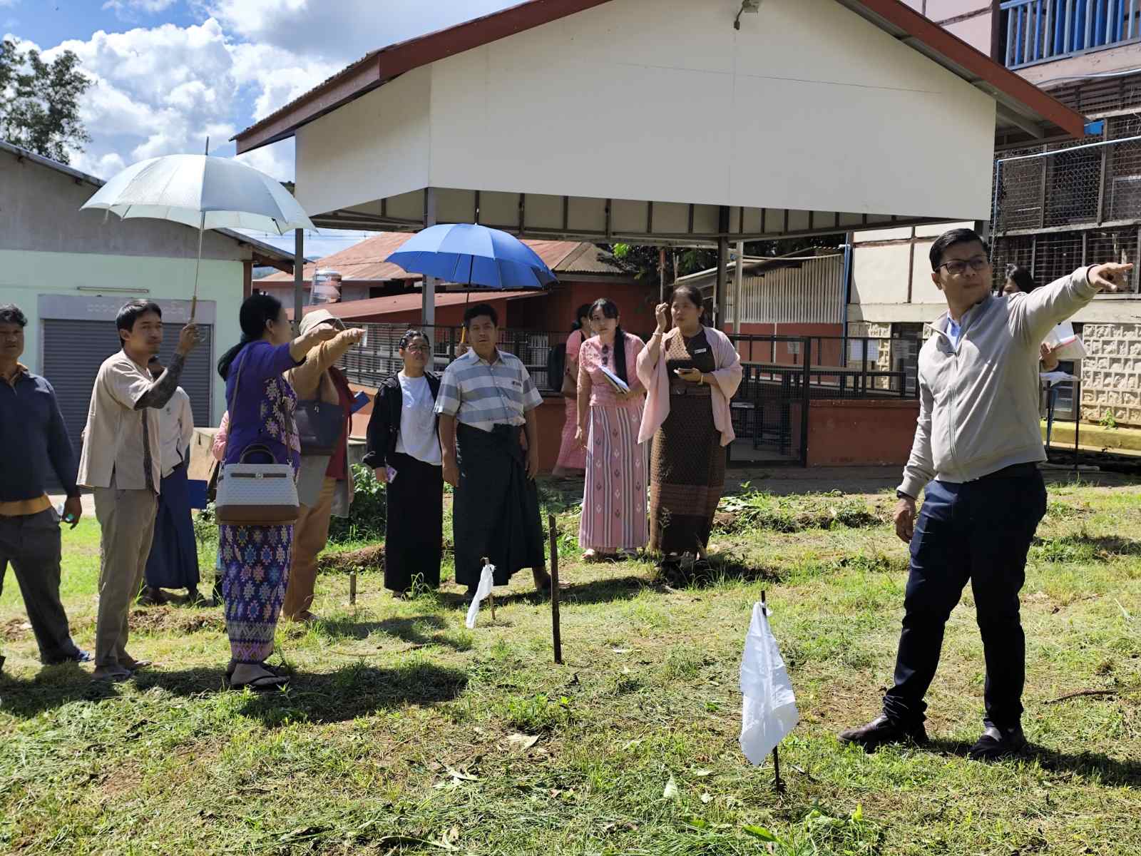 ထိုသို့ကွင်းဆင်းဆောင်ရွက်ရာတွင် နေပြည်တော် ကုသရေးဦးစီးဌာန ဒုတိယညွှန်ကြားရေးမှူးချုပ်(စီမံ/ဘဏ္ဍာ) ဒေါက်တာ ကျော်ဇေယျ၊ အင်ဂျင်နီယာဌာနမှ တာဝန်ရှိသူများ၊ ပြည်နယ်ကုသရေးနှင့်ပြည်သူ့ကျန်းမာရေးဦးစီးဌာနမှ တာဝန်ရှိသူများသည် ခရိုင်ပြည်သူ့ဆေးရုံကြီး ဆေးကုသမှုလုပ်ငန်းများ ပိုမိုအဆင့်မြှင့်တင်နိုင်ရေးအတွက် စံကိုက်ခွဲစိတ်ခန်းပါရှိသော (၃)ထပ်လူနာဆောင် အသစ်ဆောက်လုပ်ရန်မြေနေရာ ကြည့်ရှုပြီး Site Plan ရေးဆွဲခြင်းနှင့် လက်ရှိအသုံးပြုနေသော နှစ်ထပ်လူနာဆောင်သို့ လူနာများ၊ အောက်ဆီဂျင်အိုးများ အတင်အချပြုလုပ်ရာတွင် လွယ်ကူအဆင်ပြေစေရန် Toolley way slope ထည့်သွင်းရန်အတွက် မြေပြင်ကွင်းဆင်းကြည့်ရှုစစ်ဆေးပြီး လိုအပ်သည်များ မှာကြားသည်။