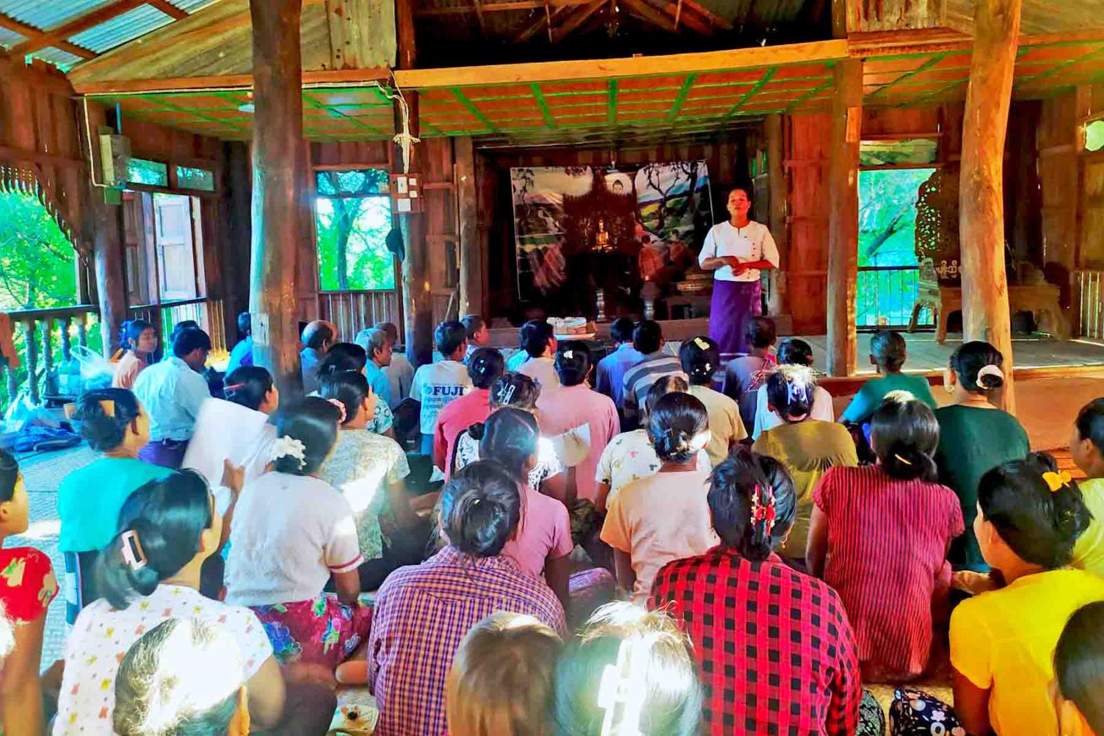 ရှေးဦးစွာ ပွင့်ဖြူမြို့နယ်ကျေးလက်ဒေသဖွံ့ဖြိုးတိုးတက်ရေးဦးစီးဌာန အကြီးတန်းစာရေး ဒေါ်ငြိမ်းငြိမ်းစံ က မြစိမ်းရောင်ကျေးရွာစိမံကိန်း အကောင်အထည်ဖော် ဆောင်ရွက်ပေးခြင်းမှ ရရှိလာမည့် အကျိုးကျေးဇူးများ၊ စီမံကိန်း လက်စွဲစာစောင်ပါအကြောင်းအရာများ၊ စီမံကိန်းမူဘောင်နှင့် လုပ်ငန်းစဉ် များ၊ ကျေးရွာပြည်သူများ ထားရှိရမည့် ကျေးရွာစိတ်ဓာတ်များ၊ ကျေးလက်ဒေသ ဖွံ့ဖြိုးတိုးတက်ရေး ဥပဒေ၊ နည်းဥပဒေပါ အကြောင်းအရာများကို ရှင်းလင်းပြောကြားခဲ့သည်။