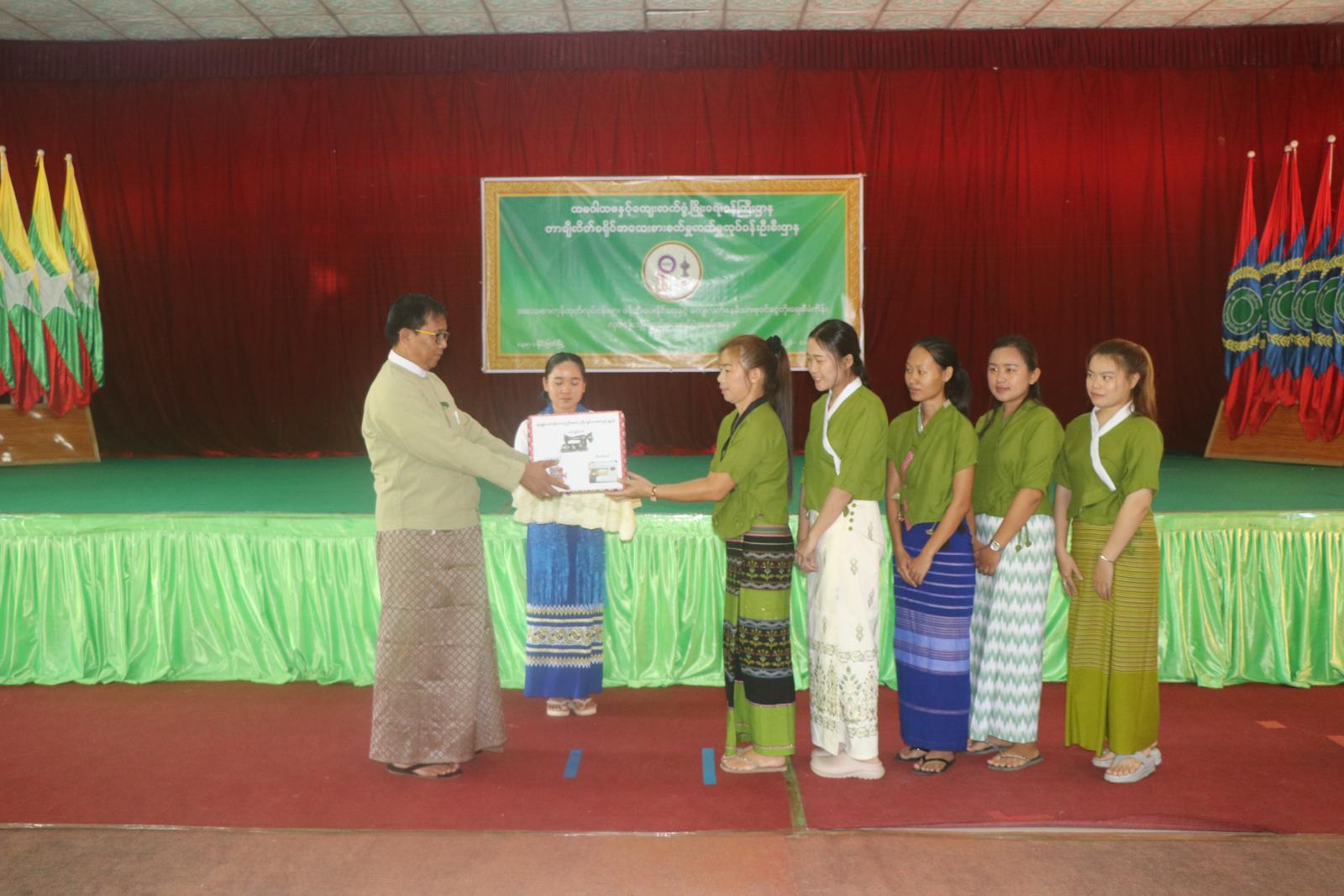 ရှမ်းပြည်နယ်(အရှေ့ပိုင်း)၊ တာချီလိတ်ခရိုင်၊ မိုင်းဖြတ်မြို့နယ်တွင် အသေးစား ထုတ်ကုန်လုပ်ငန်းများဖန်တီပေးနိုင်ရေးနှင့် ကျေးလက်နေမိသားစုဝင် ငွေတိုးပွားစေရန် ရည်ရွယ်၍ လုပ်ငန်းသုံးပစ္စည်းများပေးအပ်ခြင်းနှင့် သင်တန်းဆင်းပွဲ အခမ်းအနားကို အောက်တိုဘာလ ၂၁ရက်၊ နံနက် ၉နာရီက မြို့နယ်အထွေထွေအုပ်ချုပ်ရေးဦးစီးဌာန အစည်းအဝေးခန်းမ၌ ကျင်းပပြုလုပ်ခဲ့သည်။ ရှေးဦးစွာ စစ်ဆင်ရေးကွပ်ကဲရေးမှူးဗိုလ်မှူးကြီး သန့်လွင်စိုးက အဖွင့်အမှာစကားပြောကြားပြီး မြို့နယ်စီမံအုပ်ချုပ်ရေးအဖွဲ့ ဥက္ကဋ္ဌဦးလှမျိုးက စီမံကိန်းနှင်ပတ်သက်သည့် အခြေအနေများကိုရှင်းလင်းပြောကြားခဲ့သည်။ထို့နောက်ဗိုလ်မှူးကြီး သန့်လွင်စိုး၊ မြို့နယ်စီမံအုပ်ချုပ်ရေးအဖွဲ့ ဥက္ကဋ္ဌဦးလှမျိုးနှင့် အဖွဲ့ဝင်ဦးထွန်းရွှေတို့က နမ့်လောက်၊ ဟိုနား(စောမွန်)၊ ပါလောင်းကျေးရွာတို့မှ ထူးချွန်သင်တန်းသူများကို လုပ်ငန်းသုံး ပစ္စည်းများ အသီးသီးပေးအပ်ခဲ့သည်။ ဆက်လက်၍ တာချီလိတ်ခရိုင်၊ အသေးစားစက်မှု လုပ်ငန်းဦးစီးဌာနမှ ခရိုင်ဦးစီးမှူး ဦးအောင်ထွေးဝင်းက က သင်တန်းဆင်းလက် မှတ်များကိုပေးအပ်ခဲ့ပြီး သင်းတန်းသူတစ်ဦးက ကျေးဇူးတင်စကားများ ပြောကြားခဲ့သည်။ ယင်းနောက် တာဝန်ရှိသူများက ခင်းကျင်းပြသထားသည့် လုပ်ငန်းသုံးပစ္စည်းများကို ကြည့်ရှုခဲ့ ကြောင်းသိရသည်။