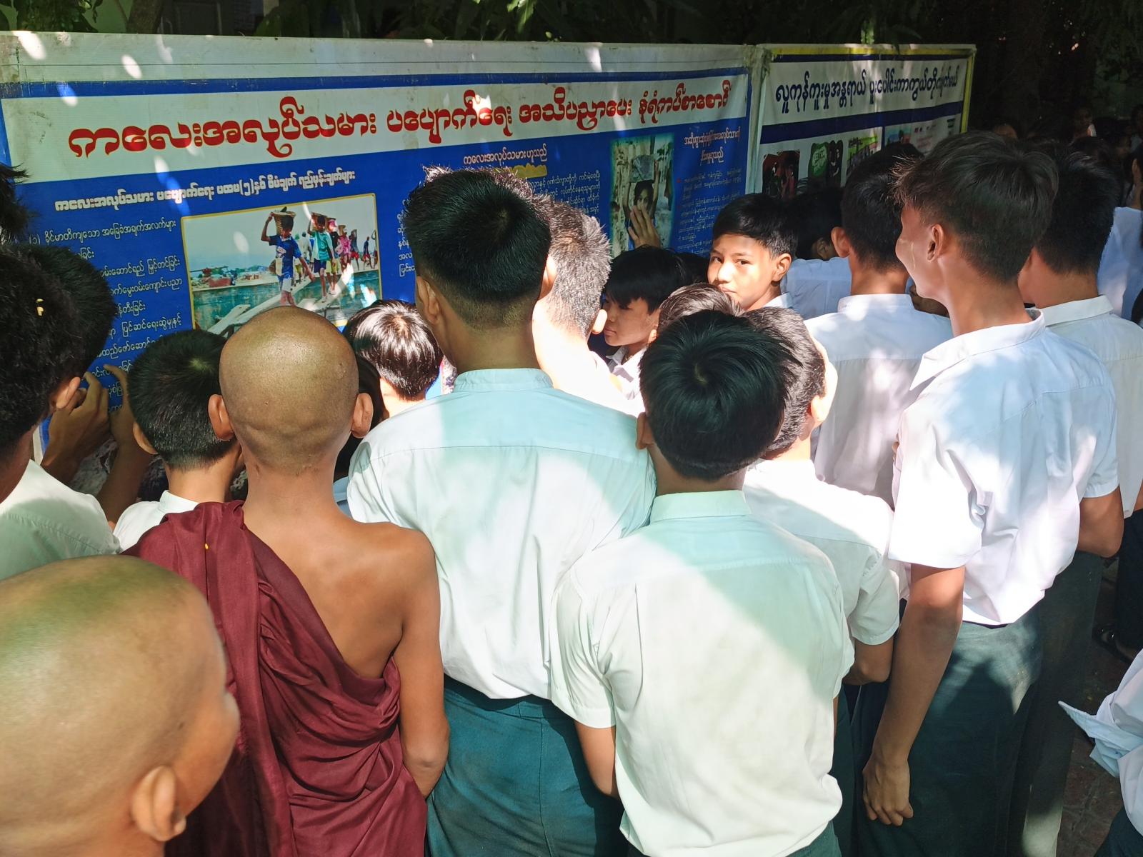 ထို့နောက် မြို့နယ်ပြန်ကြားရေးနှင့်ပြည်သူ့ဆက်ဆံရေးဦးစီးဌာနမှ လူငယ်ရေးရာအသိ ပညာပေးနံရံကပ် စာစောင်များ၊ မူးယစ်ဆေးဝါးတာဆီးကာကွယ်ရေး အသိပညာပေး နံရံကပ်စာစောင်များ၊ ကလေးအလုပ်သမားပပျောက်ရေး အသိပညာပေးနံရံကပ်စာစောင် များနှင့် သုတ၊ ရသစာအုပ်စာစောင်များကို ပြသခဲ့ရာ ကျောင်းသား၊ ကျောင်းသူများမှ စိတ်ပါဝင်စားစွာ လေ့လာကြည့်ရှုခဲ့ကြကြောင်း သိရသည်။