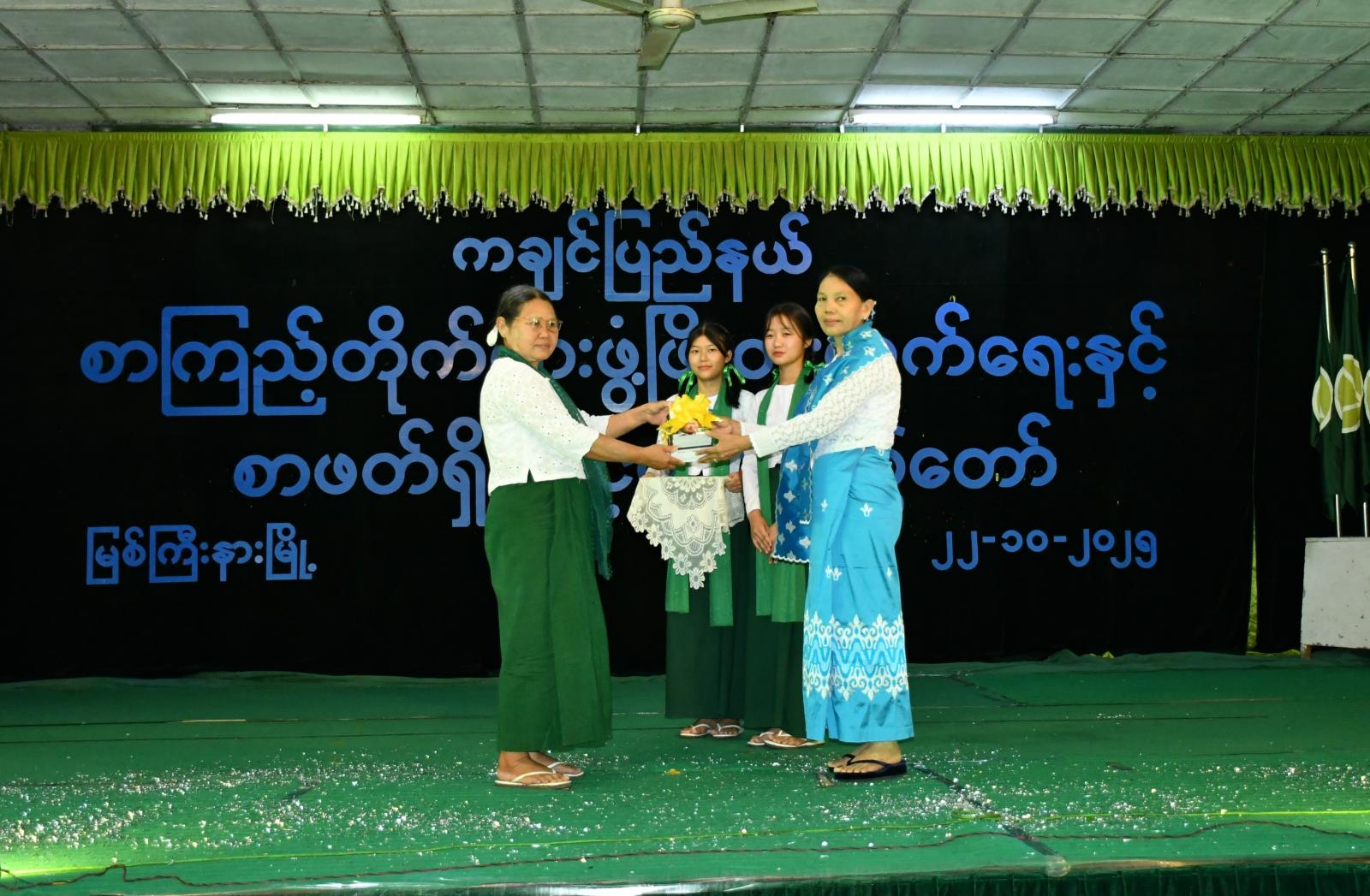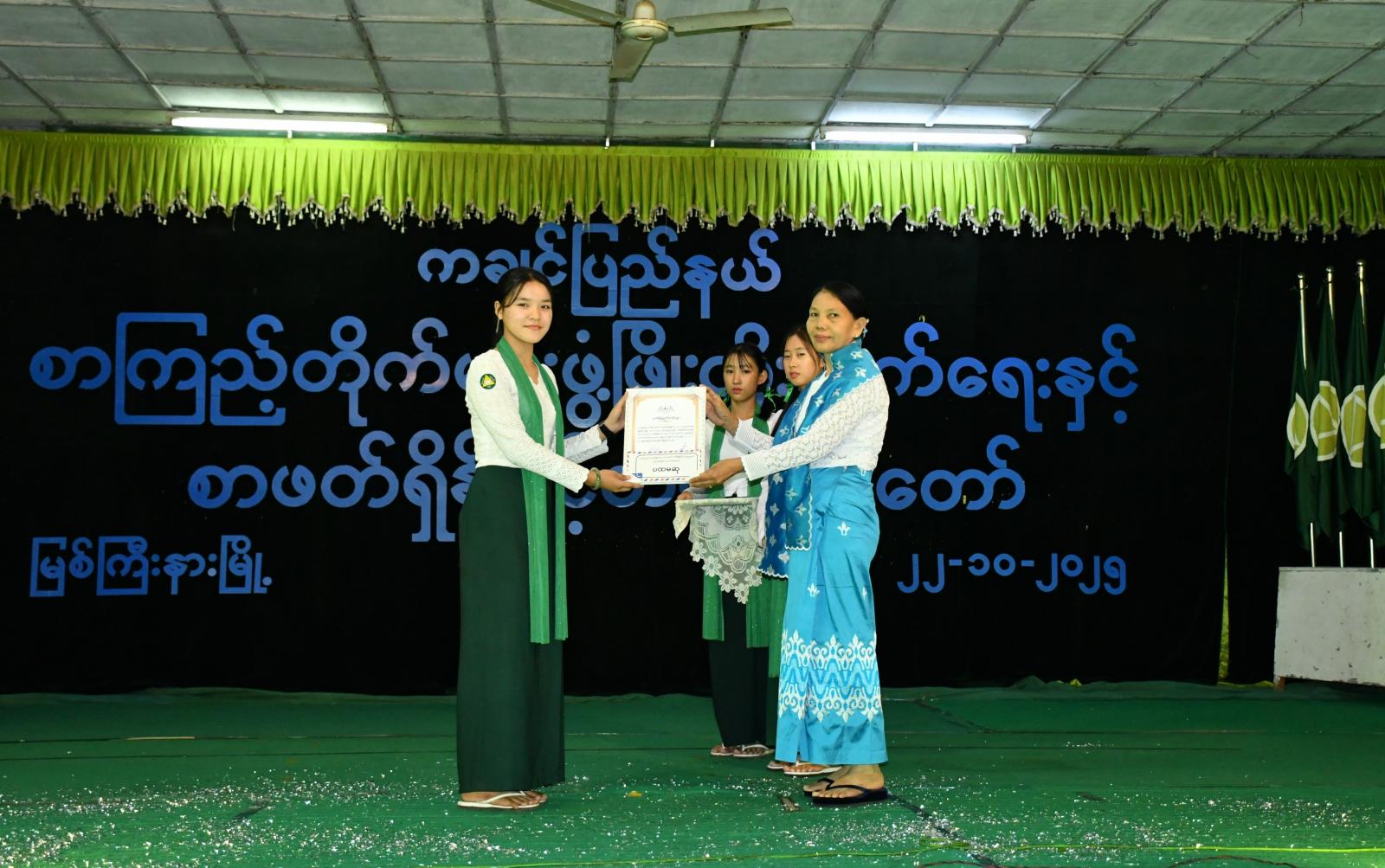 ဆက်လက်၍ ပြည်နယ်ပြန်ကြားရေးနှင့်ပြည်သူ့ဆက်ဆံရေးဦးစီးဌာန၊ ပြည်နယ်ဦးစီးမှူး ဒေါ်မာလာဝင်းက အဆိုပါကျောင်းစာကြည့်တိုက်အတွက် သုတ/ရသ စာအုပ်၊ စာစောင်များကို လှူဒါန်းပေးပြီး ပြည်နယ်ဦးစီးမှူးနှင့် တာဝန်ရှိသူများက စာကြည့်တိုက်များဖွံ့ဖြိုးတိုးတက်ရေးနှင့် စာဖတ်ရှိန်မြှင့်တင်ရေးပွဲတော်တွင် လူငယ်များအတွက် ကျင်းပပေးခဲ့သော ကာယဉာဏစွမ်းရည် ပြိုင်ပွဲများဖြစ်သည့် ထက်၊ လယ်၊ မူအဆင့် ကျပန်းစကားပြော၊ စာစီစာကုံးနှင့် ပုံပြင်ပြောပြိုင်ပွဲများ တွင် ဆုရရှိခဲ့ကြသူများနှင့် စာဖတ်ဝိုင်းတွင် ပါဝင်ဆွေးနွေးခဲ့ကြသည့် ကျောင်းသား/ကျောင်းသူများအား ဂုဏ်ပြုမှတ်တမ်းလွှာနှင့် ဂုဏ်ပြုချီးမြှင့်ငွေများကိုလည်းကောင်း၊ သရုပ်ပြအကအဖွဲ့များအတွက် ဂုဏ်ပြုချီးမြှင့်ငွေများကိုလည်းကောင်း အသီးသီးပေးအပ်ချီးမြှင့်ခဲ့ကြသည်။