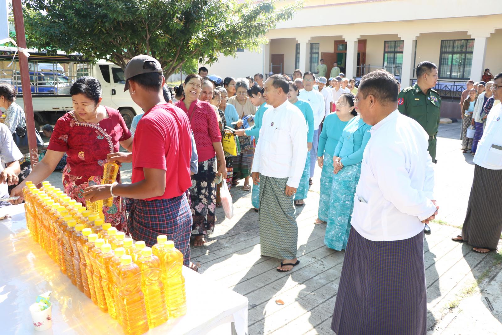 ဆက်လက်၍ တိုင်းဒေသကြီး ဝန်ကြီးချုပ်နှင့် တာဝန်ရှိသူများသည် အဆိုပါခန်းမဝန်းအတွင်း၌ တိုင်းဒေသကြီး စားသုံးသူရေးရာဦးစီးဌာန၊ စည်ပင်သာယာရေးအဖွဲ့နှင့် မြို့နယ်အထွေထွေအုပ်ချုပ်ရေးဦးစီးဌာနတို့မှ အငြိမ်းစားဝန်ထမ်းများအား အခြေခံစားသောက်ကုန်များဖြစ်သည့် ဆန်၊ စားသုံးဆီနှင့် ဟင်းသီးဟင်းရွက်များအား ဈေးနှုန်းသက် သာစွာဖြင့် ရောင်းချပေးနေမှုများအား လိုက်လံကြည့်ရှုခဲ့ကြသည်။