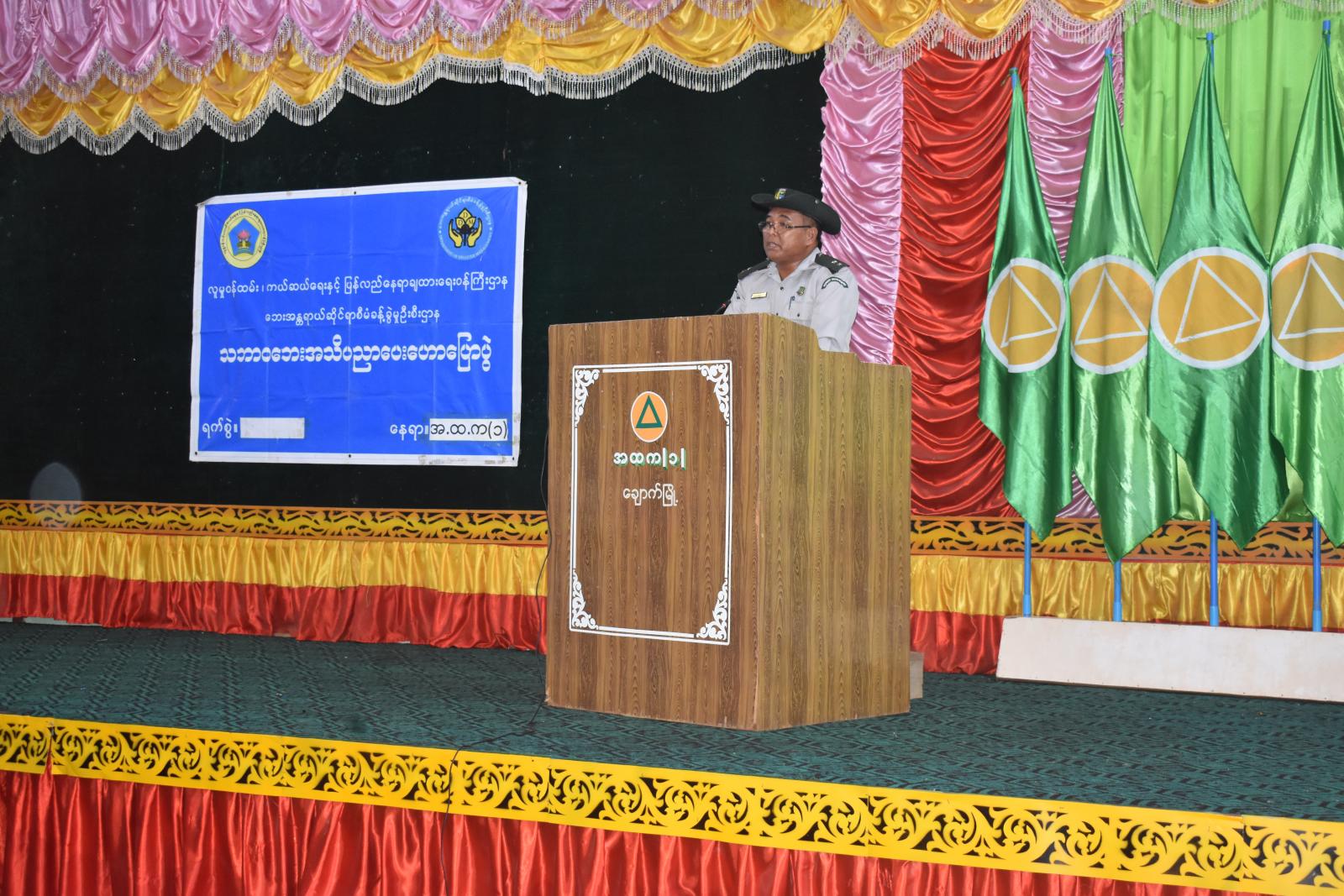 ဆက်လက်၍ မြို့နယ်အားကစားမှူး ဦးဇော်လင်းအောင်က အ.ထ.က(၁)ကျောင်းအတွက် အားကစားပစ္စည်းပေးအပ်ခဲ့ရာ ကျောင်းအုပ်ဆရာကြီးဦးခင်မောင်လွင် ကလက်ခံရယူခဲ့ပြီး အ. ထ.က(၁)ကျောင်း၊ ကျောင်းအုပ်ဆရာကြီးဦးခင်မောင်လွင် ကကျေးဇူးတင်စကား ပြန်လည်ပြောကြားခဲ့သည်။ ထို့နောက်ဟောပြောပွဲအပြီးတွင် ဌာနဆိုက်ရာများက မိမိတို့ သက်ဆိုင်ရာဌာနအလိုက် ကျောင်းသား၊ကျောင်းသူများအား အသိပညာပေး လက်ကမ်းစာစောင်များအား ဖြန့်ဝေပေးခဲ့သည်။ အဆိုပါအသိပညာပေးဟောပြောပွဲတွင် ကျောင်းအုပ် ဆရာကြီးနှင့်ဆရာ၊ ဆရာမ၊ ကျောင်းသား၊ ကျောင်းသူ စုစုပေါင်း (၂၅၀)ဦးတက်ရောက်ခဲ့ကြောင်းသိရသည်။