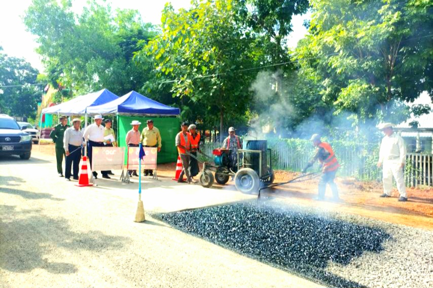 ဆက်လက်၍ ဝန်ကြီးချုပ်နှင့် တာဝန်ရှိသူများသည် ပွင့်ဖြူမြို့နယ် ကျောင်းတော်ကျေးရွာအုပ်စုရှိ လယ်ကိုင်း -ကျောင်းတော်ရာသွား ကတ္တရာကားလမ်း မိုင်တိုင်အမှတ် (၄/၁)နှင့် (၄/၂)တွင် တိုင်းဒေသကြီးအစိုးရအဖွဲ့ ခွင့်ပြုရန်ပုံငွေ ကျပ် ၁၉၂ ဒသမ ၈၄ သန်းဖြင့် Ngaphe(K.S) ကုမ္ပဏီမှ တာဝန်ယူ ဆောင်ရွက်နေသည့် ကတ္တရာလမ်းအရှည် (၂)ဖာလုံ ၊ မူလရှိ လမ်းအကျယ် ၁၈ ပေ အား ပြည်သူများ သွားလာရေးအဆင်ပြေစေရန် ကတ္တရာထပ်ပိုးလွှာခင်းခြင်းလုပ်ငန်း ဆောင်ရွက်နေမှုအား ကြည့်ရှုစစ်ဆေးရာ တာဝန်ရှိသူများက လမ်းပြုပြင်ထိန်းသိမ်းခြင်းလုပ်ငန်းများနှင့်ပတ်သက်၍ ပြီးစီးမှုအခြေအနေနှင့် ဆက်လက်ဆောင်ရွက်မည့်လုပ်ငန်းများကို ရှင်းလင်းတင်ပြရာ ဝန်ကြီးချုပ်က လုပ်ငန်းများ အရည်အသွေး ပြည့်မီရေးနှင့် အချိန်မီပြီးစီးအောင် ဆောင်ရွက်သွားရန် လမ်းညွှန်မှာကြားသည်။