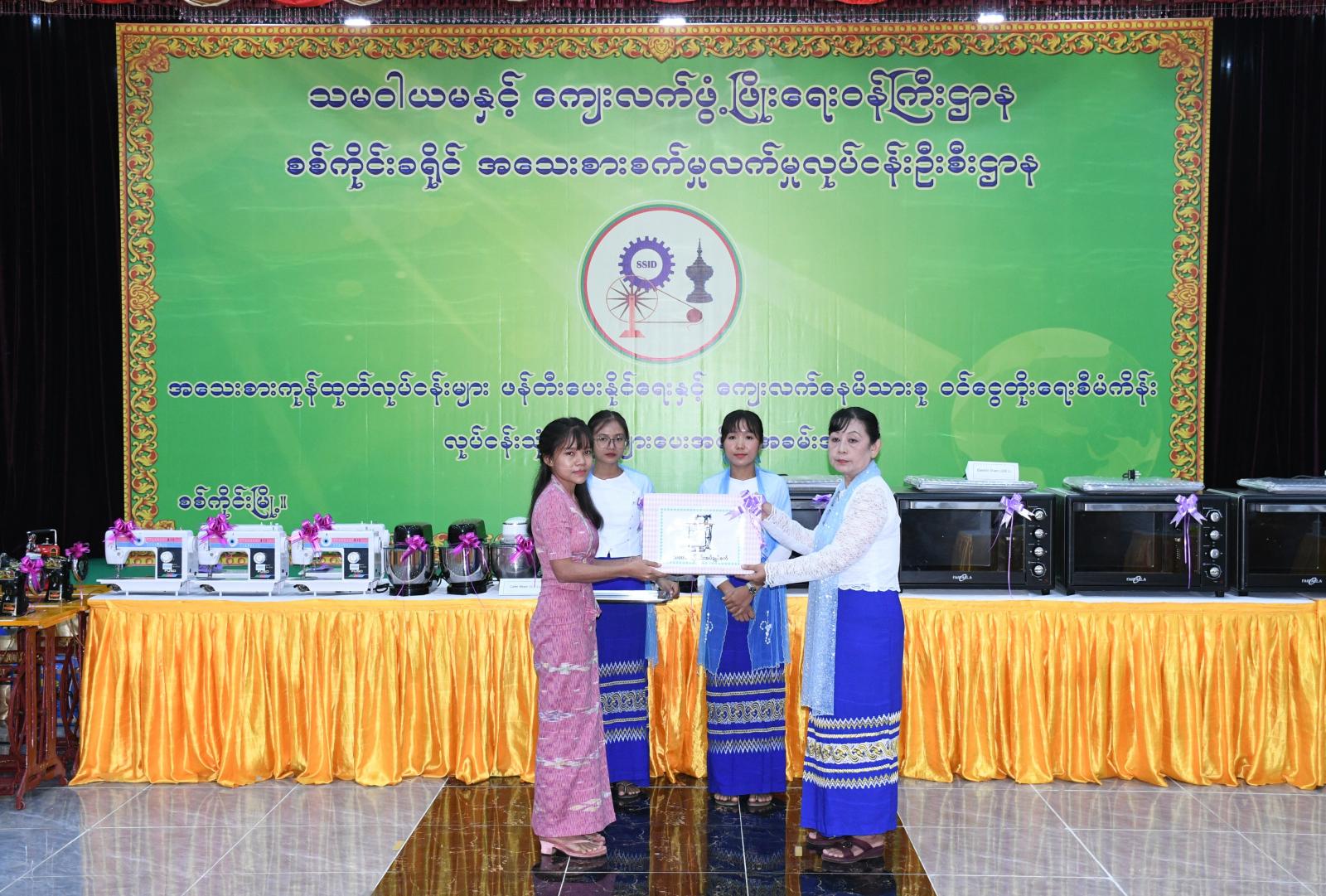 ၂၀၂၅ - ၂၀၂၆ ဘဏ္ဍာရေးနှစ် တိုင်းဒေသကြီးဘဏ္ဍာရန်ပုံငွေဖြင့် အကောင်အထည်ဖော် ဆောင်ရွက်သည့် အသေးစားကုန်ထုတ်လုပ်ငန်းများ ဖန်တီးပေးနိုင်ရေးနှင့် ကျေးလတ်နေမိသားစု ဝင်ငွေတိုးရေးစီမံကိန်း၊ ဘေးဒဏ်သင့်ပြည်သူများအတွက် စီးပွားရေးလုပ်ငန်းများ ပြန်လည်ထူထောင်ပေးရန်အတွက် ခရိုင်အသေးစားစက်မှုလက်မှုလုပ်ငန်းဦးစီးဌာနမှ ကြီးမှူး၍ တန်ဖိုးမြှင့်စားသောက်ကုန် (Bakery) အမျိုးမျိုးထုတ်လုပ်မှု နည်းပညာသင်တန်းနှင့် စက်ချုပ်နည်းပညာသင်တန်းများတွင် ထူးချွန်သင်တန်းသား၊ သင်တန်းသူများအား လုပ်ငန်းသုံးပစ္စည်းများ ပေးအပ်ပွဲအခမ်းအနားကို ယမန်နေ့နံနက်ပိုင်းက စစ်ကိုင်းမြို့၊ မြို့တော်ခန်းမ၌ ကျင်းပခဲ့သည်။
