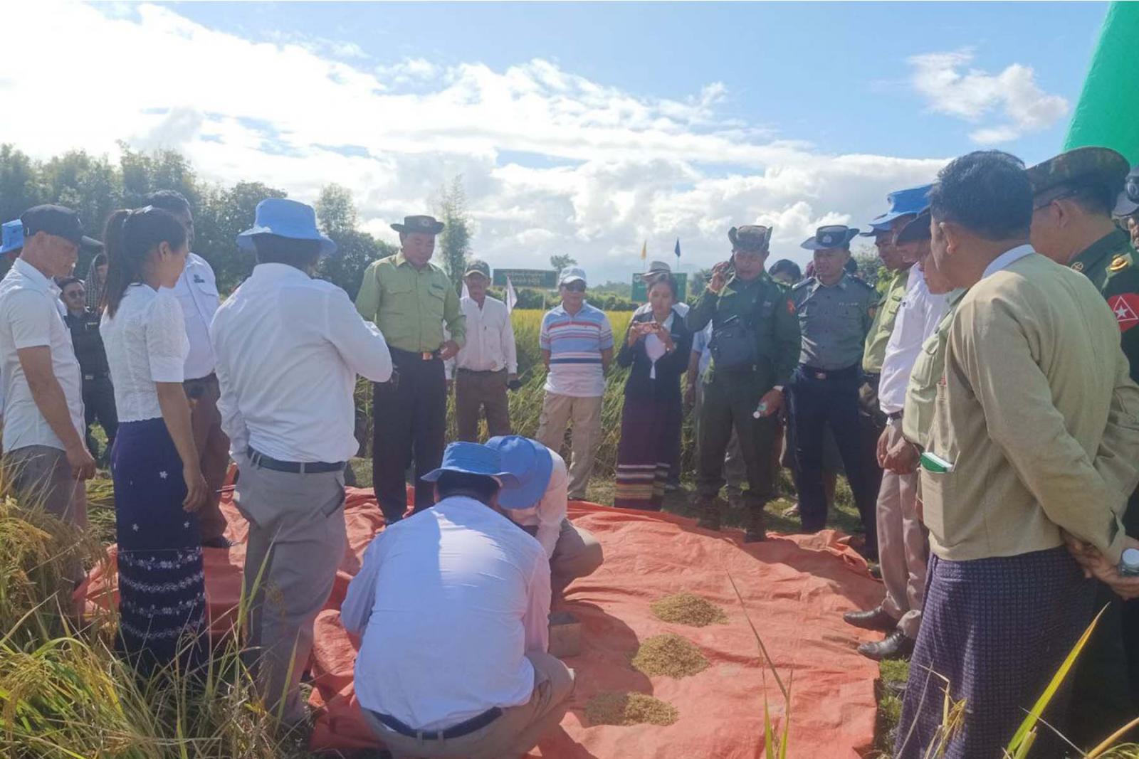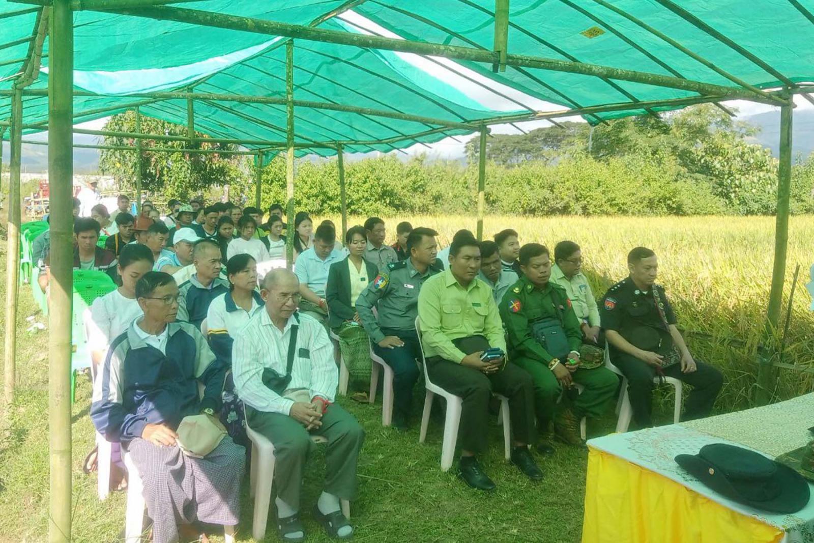 ရှမ်းပြည်နယ်(အရှေ့ပိုင်း)၊ မိုင်းယောင်းမြို့နယ်တွင် လက်စွဲကောက်စိုက်စက်ဖြင့် မိုးစပါးစိုက်ပျိုးဖြစ်ထွန်းမှု စံကွက်ရိတ်သိမ်းခြင်း ကွင်းလက်တွေ့သရုပ်ပြပွဲကို ယနေ့နံနက် ၈ နာရီခွဲက ဝမ်ဘိုးကျေးရွာ ကွင်းအမှတ်(၁၂) ဦးပိုင်/၇ တောင်သူဦးစိုင်းသီဟ၏ လယ်မြေ ၆ ဒသမ ၁၀ ဧက၌ ကျင်းပကြောင်း သိရသည်။