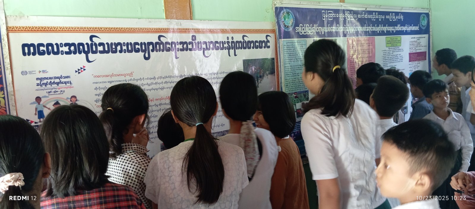 ရှေးဦးစွာ ရေဦးမြို့ ပြန်ကြားရေးနှင့်ပြည်သူ့ဆက်ဆံရေးဦးစီးဌာန ဦးစီးအရာရှိ ဒေါ်ခင်ဆွေ၀င်းက “အနာဂတ်ကမ္ဘာလှပဖို့ လူငယ်များစာဖတ်စို့ “ ခေါင်းစဉ်ဖြင့် အသိပညာပေး ဟောပြောခဲ့သည်။ ထို့နောက် အသိပညာပေးနံရံကပ်စာစောင်များကို ပြသရာ ကျောင်းသားကျောင်းသူလေးများက ပြသထားသော လူကုန်ကူးမှုအန္တရာယ်အသိပညာပေး၊ ကလေးအလုပ်သမားပပျောက်ရေး၊ မူးယစ်ဆေးဝါးအန္တရာယ်အကြောင်း မှတ်တမ်းဓာတ်ပုံများနှင့်အတူ ဆောင်ရန် ရှောင်ရန်အချက်များ ပါ၀င်သော အသိပညာပေး ဗီနိုင်းပိုစတာများကို စိတ်ဝင်တစားလေ့လာကြည့်ရှုခဲ့ကြကြောင်း သိရသည်။