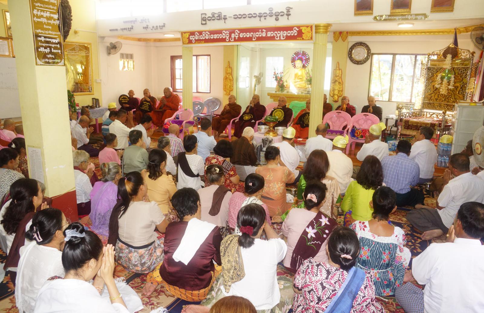 ယင်းနောက် ဩဝါဒါစရိယဆရာတော် ဘုရားထံမှ အနုမောဒနာတရားနာယူ၍ လှူဒါန်းမှုအစုစုတို့ အတွက် ရေစက်သွန်းချ အမျှပေးဝေကအခမ်းအနားကို ဗုဒ္ဓသာသနံစိရံတိဌတု သုံးကြိမ်ရွတ်ဆို ဆုတောင်း၍ အခမ်းအနားအားရုတ်သိမ်းခဲ့ပြီး ဆရာတာ်အရှင်သူမြတ်တို့အား နေ့ဆွမ်း ဆက်ကပ်လှူဒါန်းခဲ့ကြသည်။