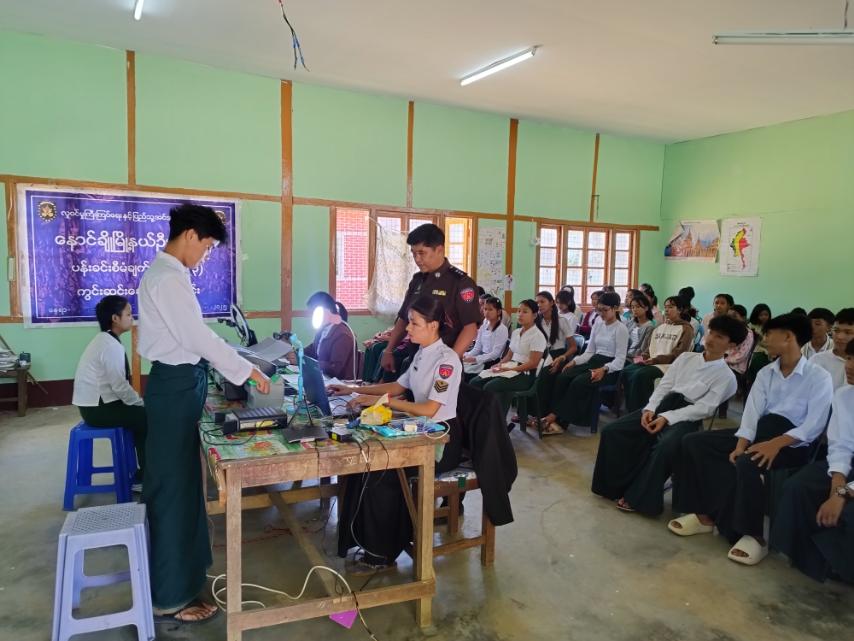 လူဝင်မှုကြီးကြပ်ရေးနှင့်ပြည်သူ့အင်အားဝန်ကြီးဌာန နောင်ချိုမြို့နယ်ဦးစီးမှူးရုံးမှ ပန်းခင်းစီမံချက် အဆင့်-၃ ဖြင့် အောက်တိုဘာ ၂၅ရက်က အထက(၁) ၌ ဇီဝအချက်အလက်များကောက်ယူ၍ e-ID ကတ်များ ဆောင်ရွက်သည်။
