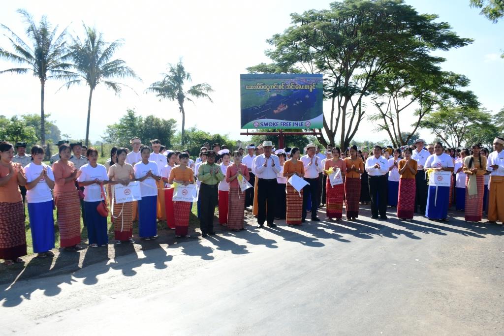 ကျန်းမာရေးဝန်ကြီးဌာန ပြည်သူ့ကျန်းမာရေးနှင့်ကုသရေးဦးစီးဌာနမှ ဆောင်ရွက်သည့် ဆေးလိပ်ငွေ့ကင်းစင် အင်းလေတခွင် မြေစိုက်ပိုစတာစိုက်ထူပွဲကို ယနေ့နံနက် ၉ နာရီက ညောင်ရွှေမြို့နယ် တိလောကျေးရွာအုပ်စု ရွှေရန်ပြေကျေးရွာအနီးရှိ ညောင်ရွှေ- ရွှေညောင် ကားလမ်းမ၌ပြုလုပ်ခဲ့ကြောင်း သိရသည်။