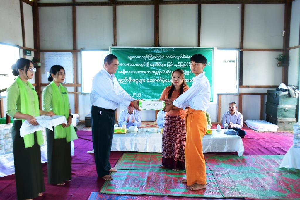 ထို့နောက် ဒေသခံပြည်သူတစ်ဦးက ကျေးဇူးတင်စကားပြောကြားပြီး ပြည်နယ်ဝန်ကြီးများနှင့်ဧည့်သည်တော်များက တစ်ဦးချင်းစီအတွက် ထောက်ပံ့ငွေပေးနေမှုကို ကြည့်ရှု အားပေးခဲ့သည်။