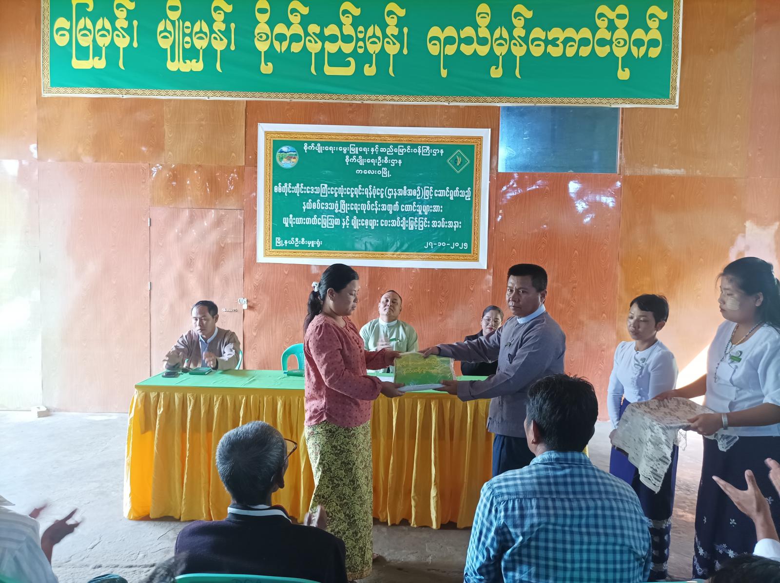 ထိုနောက် မြို့နယ်အဆင့်ဌာနဆိုင်ရာအကြီးအကဲများက တောင်သူများအား ယူရီးယားဓာတ်မြေသြဇာနှင့် မျိုးစေ့များကိုပေးအပ်ခဲ့သည်။ အခမ်းအနားသို့ မြို့နယ်စီမံခန့်ခွဲရေးနှင့်အုပ်ချုပ်ရေးကော်မတီဥက္ကဋ္ဌနှင့် အဖွဲ့ဝင်များ၊ မြို့နယ်အဆင့်ဌာနဆိုင်ရာအကြီးအကဲများ၊ ဒေသခံတောင်သူများ စုစုပေါင်း ၅၀ ဦးခန့် တက်ရောက်ခဲ့ကြောင်း သိရသည်။