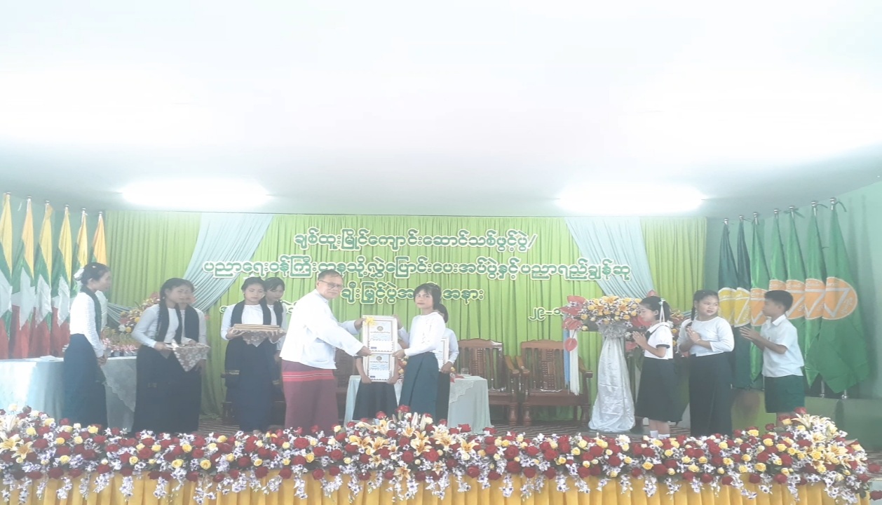 ဆက်လက်၍ ၂၀၂၃-၂၀၂၄ပညာသင်နှစ်နှင့် ၂၀၂၄-၂၀၂၅ ပညာသင်နှစ်ပညာရည်ချွန်ဆုချီးမြှင့်ခြင်း အခမ်းအနားကိုကျင်းပရာ ကွမ်ဘီကျေးရွာ အခြေခံပညာမူလတန်းကျောင်း ကျောင်းအုပ်ဆရာမကြီး ဒေါ်နန်းစိန်စိန်ပွင့်က အမှာစကားပြောကြားသည်။ ထို့နောက် ၂၀၂၃-၂၀၂၄ပညာသင်နှစ်နှင့် ၂၀၂၄-၂၀၂၅ ပညာသင်နှစ်တို့တွင်ဆုရရှိသော ကျောင်းသား၊ ကျောင်းသူများအား ပြည်နယ်ပညာရေးမှူးရုံးမှ ညွှန်ကြားရေးမှူး ဦးစသိန်းကျော်၊ ခရိုင်ပညာရေးမှူး၊ မြို့နယ်ပညာရေးမှူးနှင့်တာဝန်ရှိသူများက ဆုများ ပေးအပ်ချီးမြှင့်ခြင်း၊ ဘာသာရပ်အလိုက် စာသင်ပြမှုထူးချွန်ဆုရရှိသော ဆရာ၊ ဆရာမများအား ဂုဏ်ပြု မှတ်တမ်းလွှာနှင့်ဆုများပေးအပ်ခဲ့ကြောင်း သိရသည်။