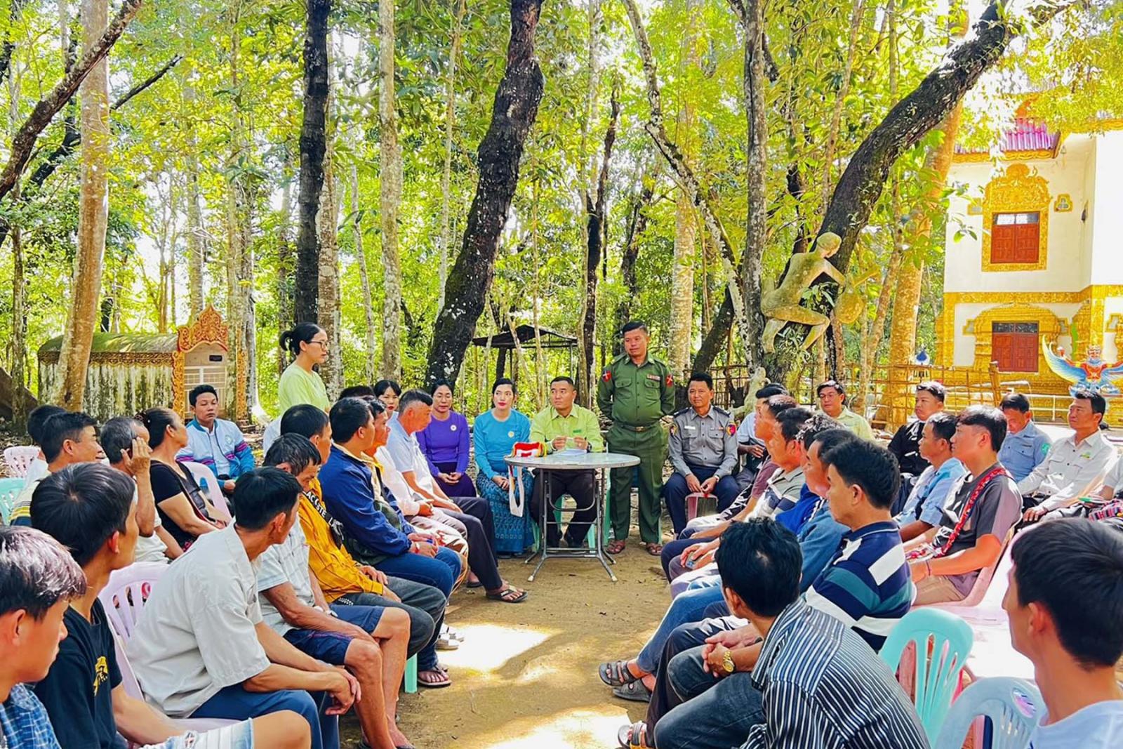 မြို့နယ် စီမံခန့်ခွဲရေးနှင့်အုပ်ချုပ်ရေးကော်မတီဥက္ကဋ္ဌ ဦးစိုးသက်ဆွေနှင့်အဖွဲ့ဝင်များ၊ မြို့နယ်အဆင့် ဌာနဆိုင်ရာများ၊ မြို့နယ်အမျိုးသမီးရေးရာအဖွဲ့၊ မြို့နယ်မိခင်နှင့်ကလေး စောင့်ရှောက်ရေးအသင်းမှ တာဝန်ရှိသူများက ဒေသဖွံ့ဖြိုးရေး၊ ပညာရေး၊ ကျန်းမာရေး၊ မူးယစ်ဆေးဝါးနှင့် လူကုန်ကူးမှုတားဆီးကာကွယ်ရေး၊ နယ်စပ်ဖြတ်ကျော် မီးခိုးမြူငွေ့ကင်းစင်ရေး၊ ပြည်သူ့စစ်မှုထမ်းဥပဒေ၊ လူငယ်ရေးရာနှင့် ရွေးကောက်ပွဲဆိုင်ရာ သိကောင်းစရာများကို ဟောပြောဆွေးနွေးခဲ့ကြသည်။