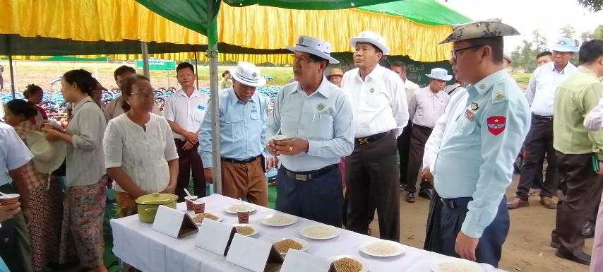 ယင်းနောက် တိုင်းဒေသကြီး ဝန်ကြီးချုပ်နှင့်အဖွဲ့က ပြသထားသည့် စပါးမျိုးစေ့ နမူနာများ၊ Drum Seederများ၊ ဓာတ်မြေဩဇာများ၊ မိုးစပါးစံကွက်အား ရိတ်သိမ်းခြွေလှေ့စက်ဖြင့် ရိတ်သိမ်းနေမှုသစ်စိမ်းမြေဩဇာပိုက်ဆံလျှော်ကြဲပက် စိုက်ပျိုးနေမှုနှင့်စိုက်ပျိုးရေးသုံး ပြခန်း များကို လှည့်လည်ကြည့်ရှုအားပေးသည်။