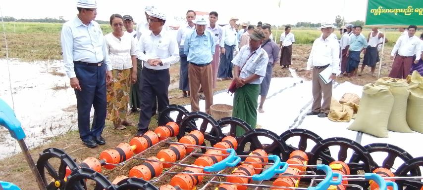 အခမ်းအနားတွင် ရန်ကုန်တိုင်းဒေသကြီးဝန်ကြီးချုပ် ဦးစိုးသိန်းက အမှာစကားပြောကြားရာ မျိုးစေ့ချကိရိယာ(Drum Seeder) ဖြင့် စပါးစိုက်ပျိုးရေးနည်းစနစ်များကို နွေစပါးရာသီမှစ၍ဆောင်ရွက်ခဲ့ကြောင်း၊ မျိုးစေ့ချကိရိယာကျယ်ကျယ်ပြန့်ပြန့် အသုံးပြုခြင်းအားဖြင့် တောင်သူကြီးများအတွက် ပျိုးနုတ်စိုက်ပျိုးခြင်း လုပ်အားခကုန်ကျစရိတ်ကို သက်သာစေခြင်း၊ အချိန်ကုန်သာစေခြင်းနှင့် သီးနှံများညီညာစွာ ပေါက်ရောက်စေခြင်းတို့ကြောင့် ပန်းတိုင်အထွက်နှုန်း ပြည့်မီကျော်လွန်အောင် ထိထိရောက်ရောက်ဆောင်ရွက်နိုင်ကြောင်းနှင့် နိုင်ငံ၏စိုက်ပျိုးရေးကဏ္ဍ အောင်မြင်ရေးအတွက် ရေရရှိရေးသည်အဓိက အကျဆုံးအခြေခံအုတ်မြစ်ပါကြောင်း ပြောကြားသည်။