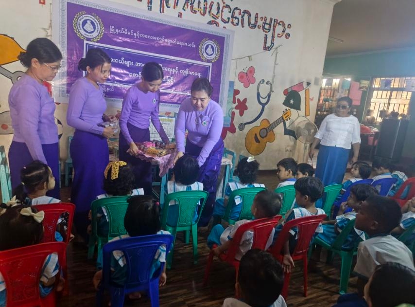 ထိုသို့ဆောင်ရွက်ရာတွင် မြို့နယ်မိခင်နှင့်ကလေးစောင့်ရှောက်ရေးအသင်းဥက္ကဋ္ဌ ဒေါ်ပြည့်ပြည့်ဝန်းနှင့်အသင်းဝင်များ၊ မြို့နယ်အမျိုးသမီးရေးအဖွဲ့ဝင်များက မူကြိုရင်သွေးငယ်များအား အာဟာရဖြစ်စေမည့် မုန့်နှင့်နို့ဘူးများအားကျွေးမွေးပြီးနောက် ပြည်သူ့ကျန်းမာရေးဦးစီးဌာနမှ ကျန်းမာရေးဦးစီးမှူး ဒေါက်တာမေသီတာနှင့်အဖွဲ့က မူကြိုရင်သွေးငယ်များအား သွားနှင့် ခံတွင်းကျန်းမာရေးကိုစစ်ဆေးရာ မြို့နယ်မိခင်နှင့် ကလေးစောင့်ရှောက်ရေးအသင်းဥက္ကဋ္ဌ ဒေါ်ပြည့်ပြည့်ဝန်းနှင့်အဖွဲ့ဝင်များက ကူညီပေးခဲ့ကြကြောင်း သိရသည်။