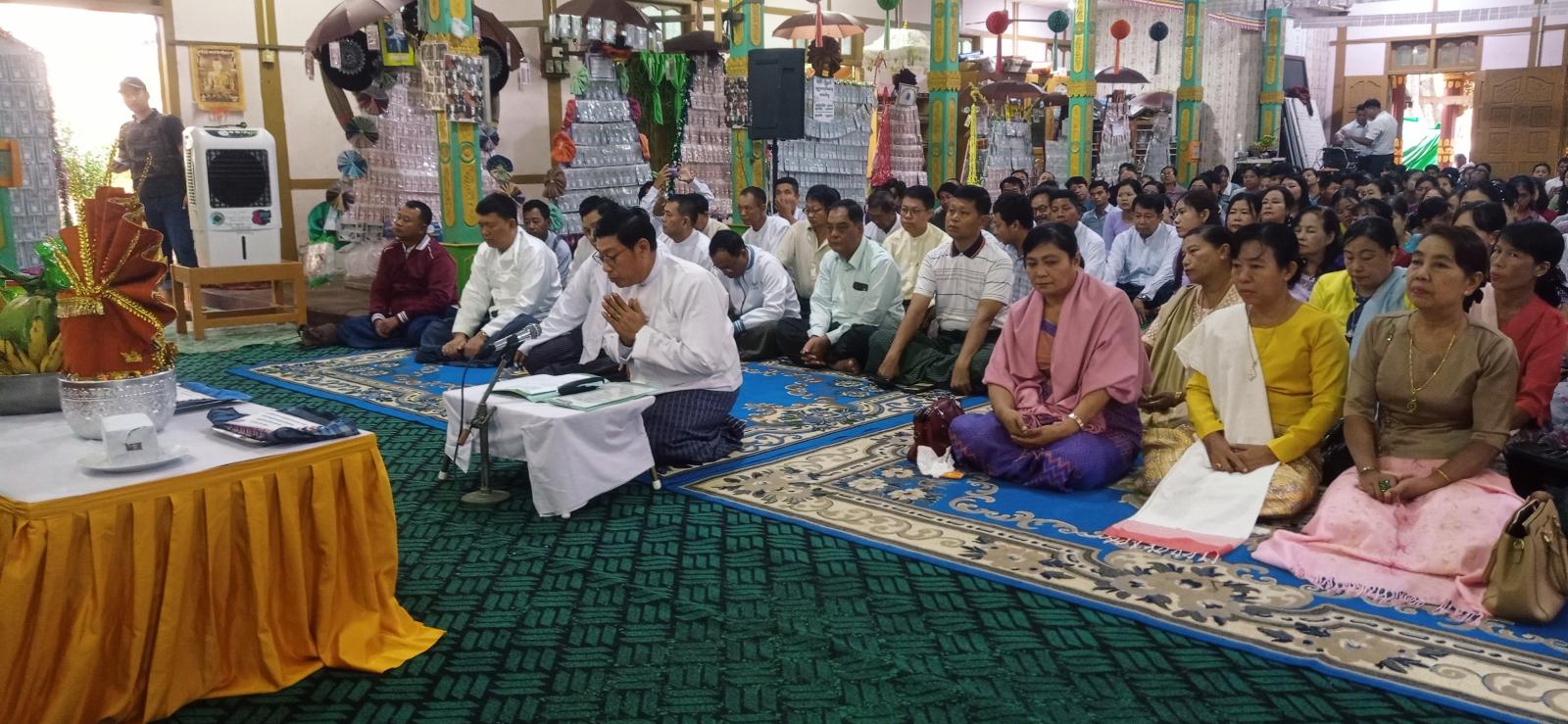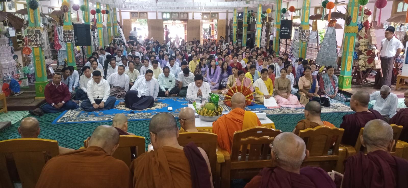 အဆိုပါ အခမ်းအနားသို့ ကသာမြို့ပေါ်ကျောင်းတိုက်များမှ ဆရာတော်သံဃာတော်များ ကြွရောက်ချီးမြှင့်တော်မူကြပြီး ပင့်ဖိတ်ထားသောဆရာတော် သံဃာတော်များအား ကသာခရိုင် စီမံခန့်ခွဲရေးနှင့်အုပ်ချုပ်ရေးကော်မတီဥက္ကဋ္ဌ ဦးကျော်စွာထွန်းနှင့်အဖွဲ့ဝင်များ၊ မြို့နယ်စီမံခန့်ခွဲရေးနှင့် အုပ်ချုပ်ရေးကော်မတီခေတ္တဥက္ကဋ္ဌ ဗိုလ်မှူး နိုင်ဝင်းနှင့်ဖွဲ့ဝင်များ၊ ခရိုင်အဆင့်/ မြို့နယ်အဆင့်ဌာနဆိုင်ရာဝန်ထမ်းများနှင့် တက်ရောက်လာကြသော ဧည့်ပရိသတ်များက “နမောတဿ” (၃)ကြိမ်ရွတ်ဆို ဘုရားကန်တော့၍ အခမ်းအနားကို ဖွင့်လှစ်ပေးခဲ့ပြီး မြို့နယ်သံဃနာယကအဖွဲ့ဥက္ကဋ္ဌဆရာတော် ဘဒ္ဒန္တတေဇာနန္ဒ မဟာထေရ်မြတ်ထံမှ ငါးပါးသီလခံယူဆောက်တည်ကြကာ ဆရာတော်၊ သံဃာတော်များက ပရိတ်တရားတော်များ ချီးမြှင့်တော်မူခဲ့ကြသည်။ ဆက်လက်၍ ကသာခရိုင်စီမံခန့်ခွဲရေးနှင့် အုပ်ချုပ်ရေးကော်မတီဥက္ကဋ္ဌ ဦးကျော်စွထွန်းက သာသနာတော်ဆိုင်ရာများနှင့် ပတ်သက်၍ လျှောက်ထားခဲ့ကြောင်း သိရသည်။