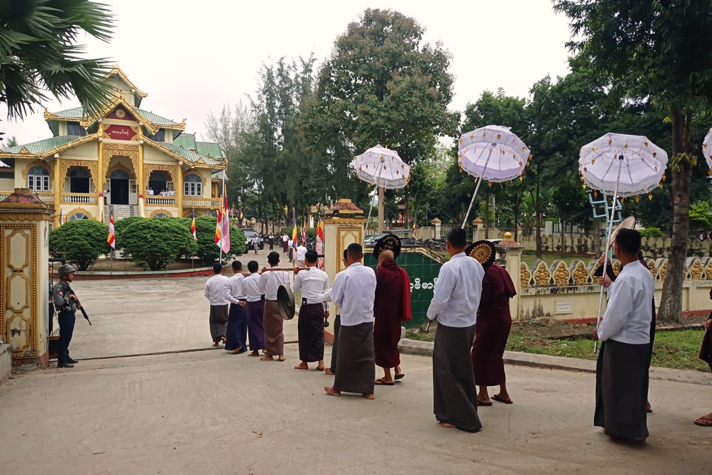 ထို့နောက် ဆရာတော်သံဃာတော် အရှင်သူမြတ်များထံမှ မေတ္တာသုတ်အစရှိသော ပရိတ်တရားတော်များကို နာယူကြည်ညိုကြကာ ဂန့်ဂေါမြို့၊ မြို့ခင်းသာပရိယတ္တိစာသင်တိုက် မြို့နယ်သံဃနာယကအဖွဲ့ဥက္ကဋ္ဌ ဆရာတော် အဂ္ဂမဟာဂန္တဝါစကပဏ္ဍိတ ဘဒ္ဒန္တဇဋိလအမှူးပြုသည့် ဆရာတော် သံဃာတော် အရှင်သူမြတ်များထံသို့ ကထိန်လျာသင်္ကန်းနှင့်လှူဖွယ်ဝတ္ထုပစ္စည်းများကို ခရိုင်စီမံခန့်ခွဲရေးနှင့်အုပ်ချုပ်ရေး ကော်မတီခေတ္တဥက္ကဋ္ဌ ဒုတိယဗိုလ်မှူးကြီး ရဲရန်ပိုင်နှင့် ဇနီးဒေါ်စုမြတ်မွန်၊ ခရိုင်စီမံခန့်ခွဲရေးနှင့်အုပ်ချုပ်ရေး ကော်မတီအဖွဲ့ဝင်များ၊ မြို့နယ်စီမံခန့်ခွဲရေးနှင့်အုပ်ချုပ်ရေးကော်မတီဥက္ကဋ္ဌ ဦးစိုးဝင်းနှင့် ခရိုင်/မြို့နယ်အဆင့်ဌာနဆိုင်ရာတာဝန်ရှိသူများက ဆက်ကပ်လှူဒါန်းကြသည်။