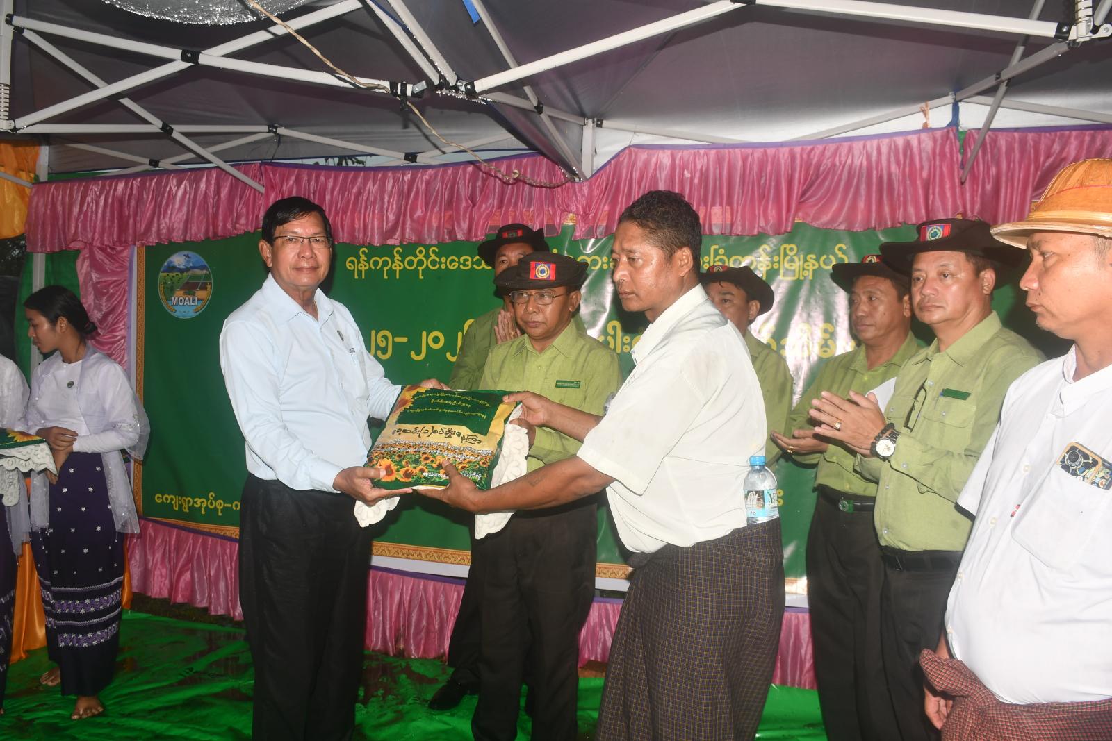 ဆက်လက်၍ ရန်ကုန်တိုင်းဒေသကြီး ဝန်ကြီးချုပ် ဦးစိုးသိန်း၊ တိုင်းဒေသကြီးအစိုးရအဖွဲ့ဝင်များနှင့် တာဝန်ရှိသူများက တောင်သူများနှင့် တာဝန်ရှိသူများအား Drum Seeder များနှင့် နေကြာမျိုးစေ့များကို ပေးအပ်ခဲ့ကြပြီး တိုင်းဒေသကြီးဝန်ကြီးချုပ်နှင့် တာဝန်ရှိသူများက Drum Seeder များ အကြောင်းကို တက်ရောက်လာသူများအား ရှင်းလင်းပြသခဲ့သည်။