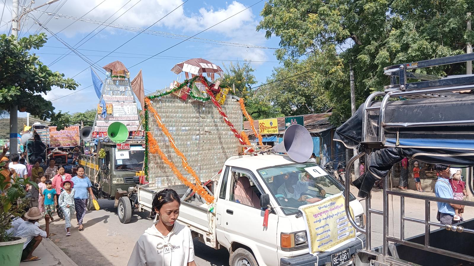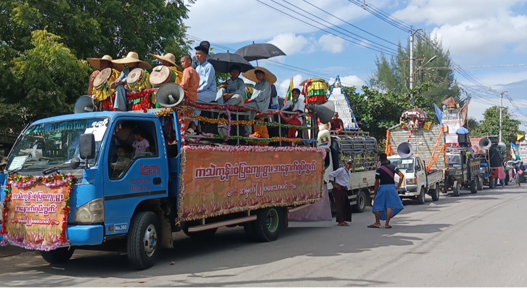 မြစ်သားမြို့တွင် ၁၃၈၇ခုနှစ်၊ (၈၈)ကြိမ်မြောက် တန်ဆောင်တိုင်ပွဲတော်ကြီးအား မြို့နယ်လုံးကျွတ် စုပေါင်းမဟာဘုံကထိန်ပဒေသာပင်များ စည်ကားသိုက်မြိုက်စွာ လှည့်လည်ကျင်းပ