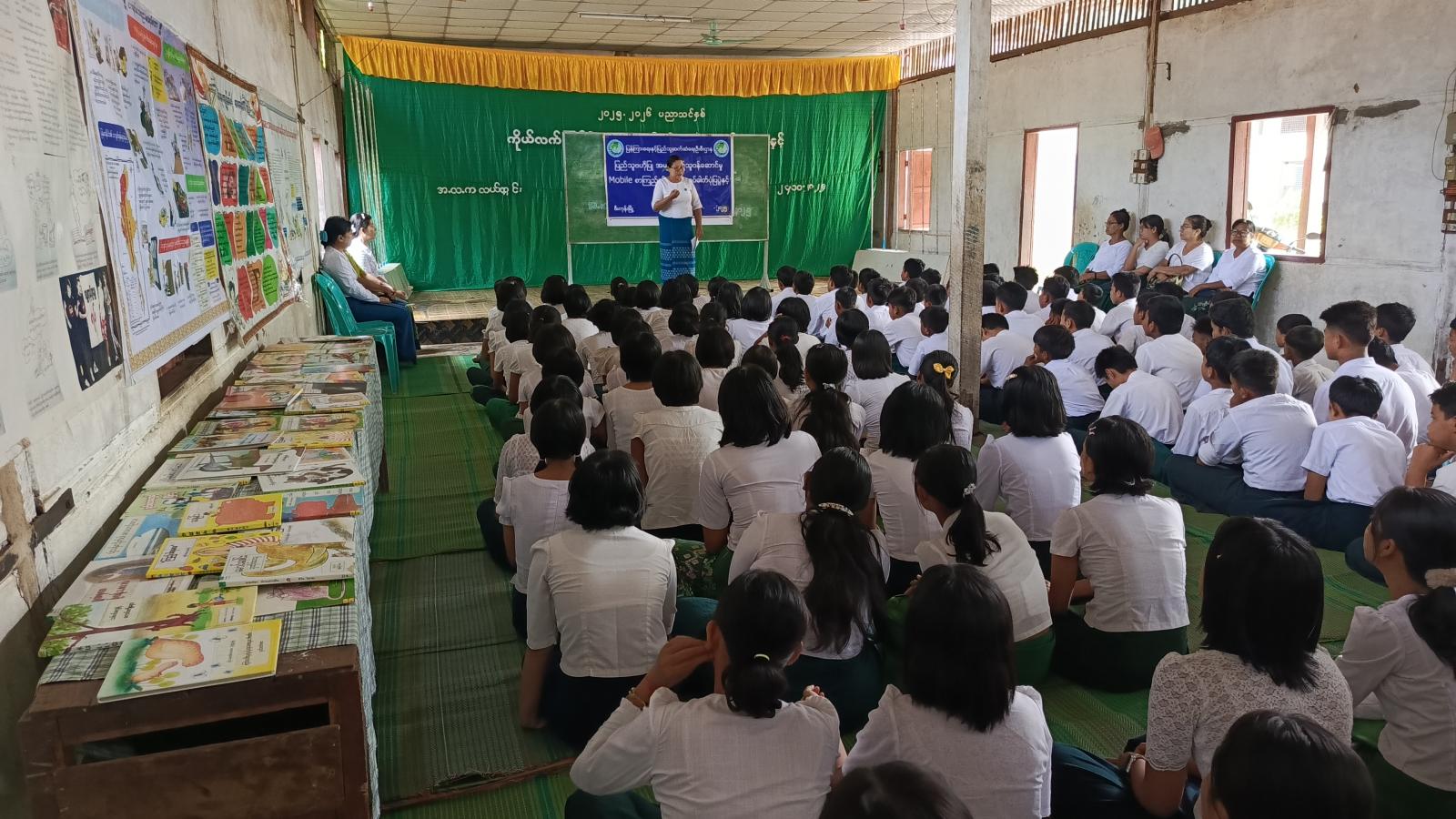 ဆက်လက်၍ ပြန်ကြားရေးနှင့်ပြည်သူ့ဆက်ဆံရေး ဦးစီးဌာနမှ ဝန်ထမ်းများက ကျောင်းသား၊ ကျောင်းသူများအား အသိပညာဗဟုသုတရရှိစေမည့် စာအုပ်စာစောင်များကိုပြသ၍ ဖတ်ရှုစေခြင်း၊ကလေးအလုပ်သမားပပျောက်ရေးနံရံကပ်စာစောင်၊ကလေးအလုပ်သမားပပျောက်ရေးနှင့် အသိပညာဗဟုသုတကြွယ်ဖို့ စာအုပ်စာပေဖတ်ကြစို့ အသိပညာပေးနံရံကပ်စာစောင်များ ပြသခြင်းတို့ကိုဆောင်ရွက်ခဲ့ရာ ဆရာ၊ဆရာမများနှင့် ကျောင်းသား၊ ကျောင်းသူများမှ စိတ်ပါဝင်စားစွာ လေ့လာကြည့်ရှုမှတ်သားခဲ့ကြောင်း သိရသည်။