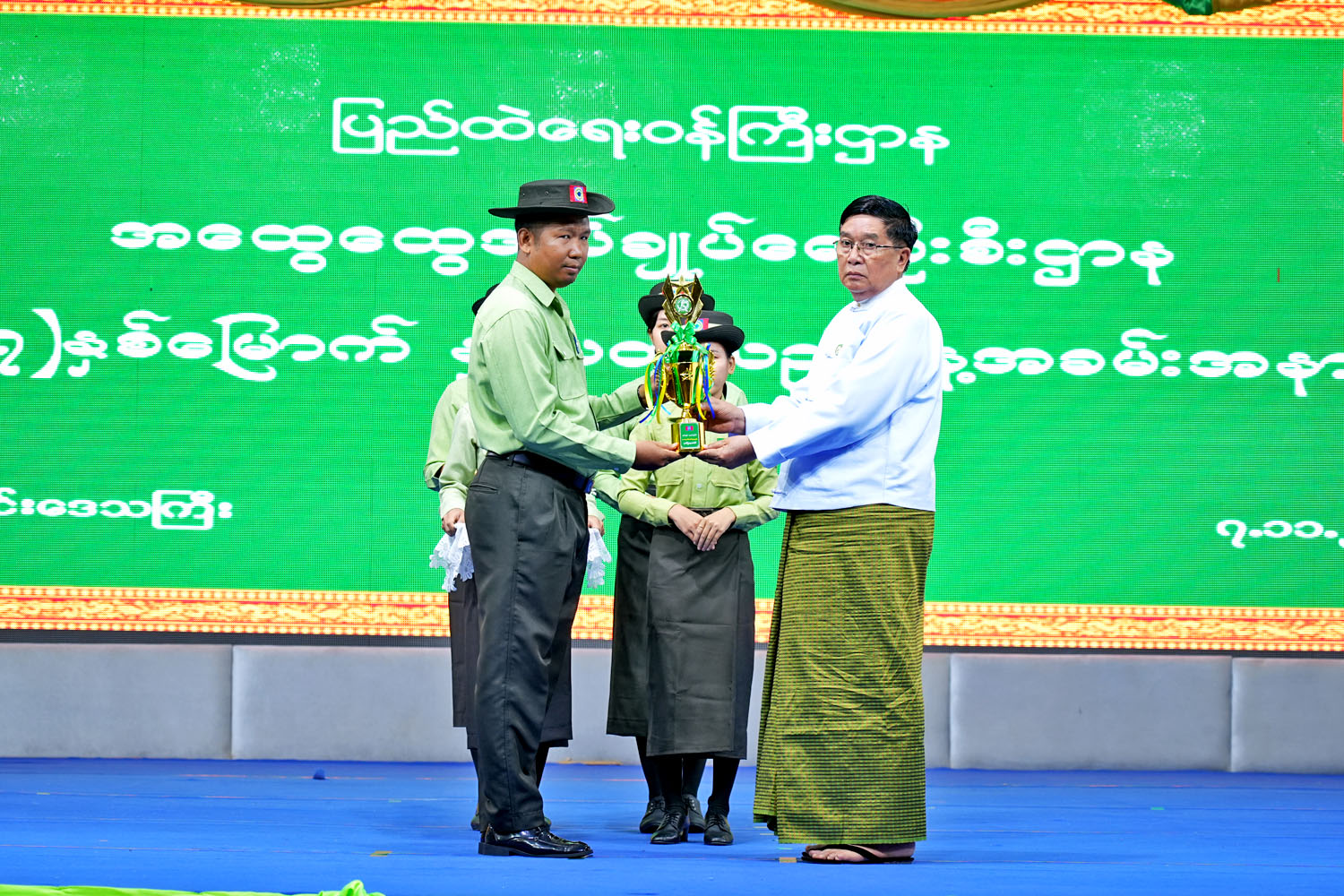ဆက်လက်၍ အထွေထွေအုပ်ချုပ်ရေးဦးစီးဌာန သမိုင်းကြောင်းနှင့် လုပ်ငန်းစွမ်းဆောင်ချက်များအား Vedio Clip ဖြင့် ပြသခဲ့ပြီး၊ နိုင်ငံ့ဝန်ထမ်းတက္ကသိုလ်များ၌ ဖွင့်လှစ်ခဲ့သည့် သင်တန်းများတွင် ထူးချွန်ဆုရရှိသူများ၊ ရုံးလုပ်ငန်းများနှင့် ရုံးအသွင်သဏ္ဍာန်တိုးတက်မှု ဆုရရှိသူများနှင့် ဝန်ထမ်းဝတ်စုံများအား တိုင်းဒေသကြီးဝန်ကြီးချုပ် ဦးတင့်လွင်နှင့်ဇနီး ယာယီတိုင်းဒေသကြီးအုပ်ချုပ်ရေးမှူးနှင့် တာဝန်ရှိသူတို့က ဆုများအား အသီးသီးချီးမြှင့်ပေးအပ်ကာ၊ တိုင်းဒေသကြီးဝန်ကြီးချုပ်နှင့် ဧည့်သည်တော်များ၊ အထွေထွေအုပ်ချုပ်ရေးဦးစီးဌာန ဝန်ထမ်းဟောင်းများအား အထွေထွေအုပ်ချုပ်ရေးဦးစီးဌာန နှစ်ပတ်လည့်နေ့အထိမ်းအမှတ် လက်ဆောင်ပစ္စည်းများ ပေးအပ်ခဲ့ကြကြောင်း သိရသည်။