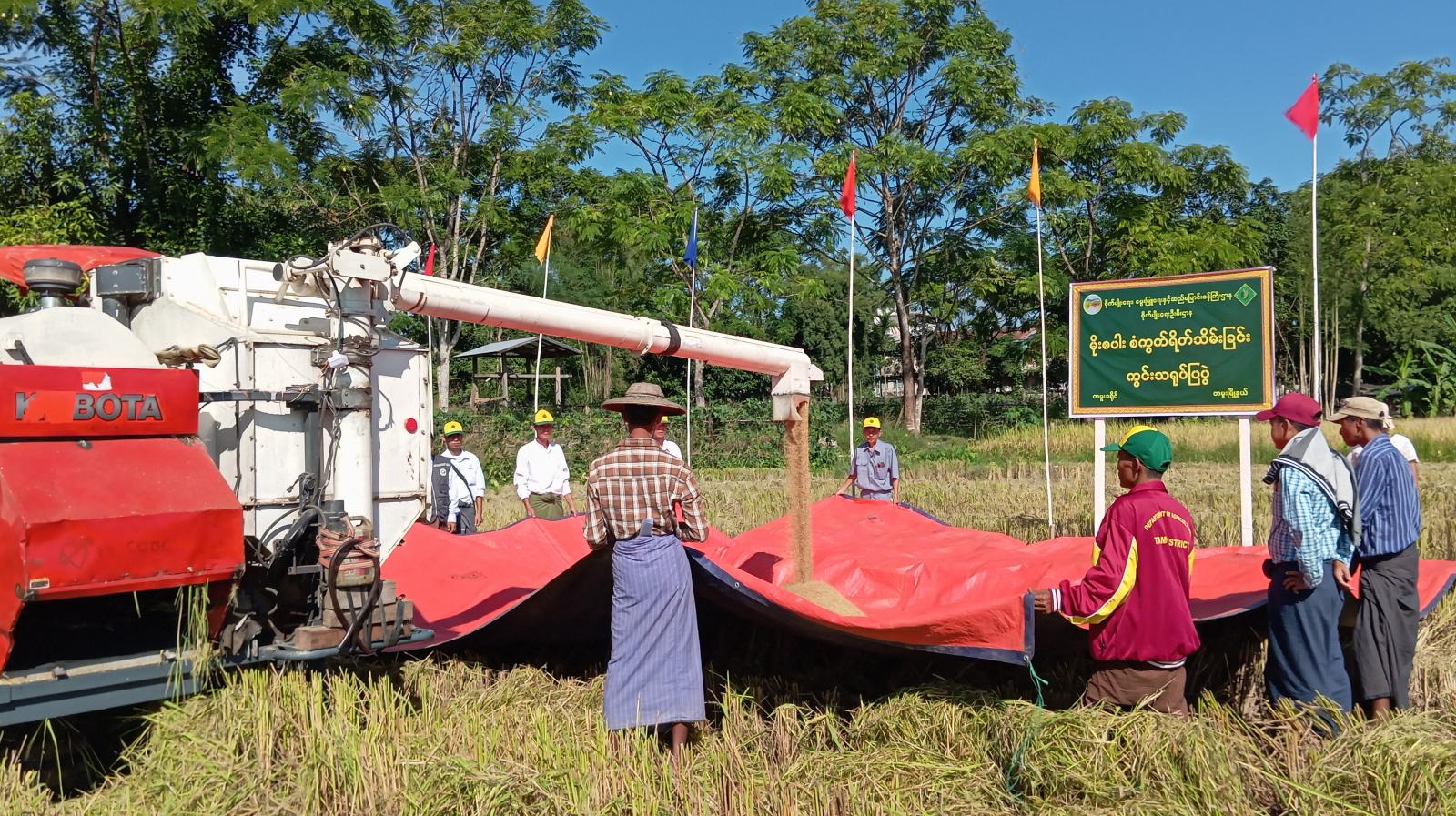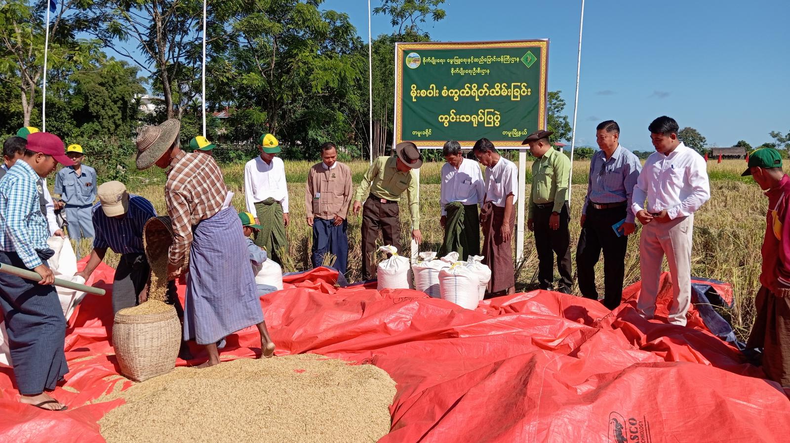 တမူးမြို့တွင် မိုးစပါးစံကွက်ရိတ်သိမ်းခြင်းကွင်းသရုပ်ပြပွဲကို နိုဝင်ဘာ (၈) ရက်နေ့ နံနက် ၉ နာရီခွဲအချိန်က မြို့မအုပ်စု ၂၅၅ (A) ကွင်းရှိ တောင်သူ ဦးတင်ဆိုင်၏ ဦးပိုင်အမှတ်-၃၇တွင် စိုက်ပျိုးထားသော မှော်ဘီ (၂) စပါးမျိုးစိုက်ခင်း၌ ကျင်းပပြုလုပ်ခဲ့ပြီး (၀.၁၀) ဧကအား စံကွက်ရိတ်သိမ်းခဲ့ရာ (၁၂) တင်းထွက်ရှိ၍ တစ်ဧက(၁၂၀)တင်း (အစို) ထွက်ရှိခဲ့သည်။