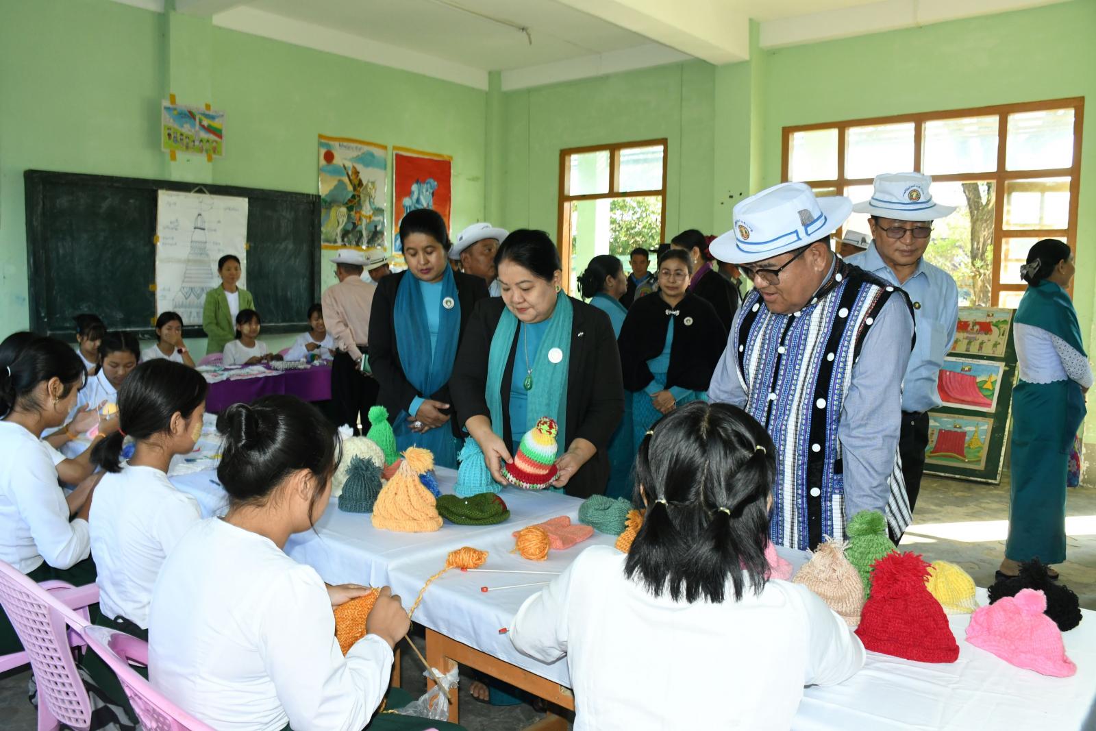 ထို့နောက် ကျောင်းစာသင်ဆောင်များအတွင်း ထက်၊ လယ်၊ မူအဆင့်အလိုက် ကျောင်းသား/ ကျောင်းသူများ၏ ဉာဏစွမ်းရည်ပြိုင်ပွဲများဖြစ်သည့် ကဗျာရွတ်ဆိုပြိုင်ပွဲ၊ ပုံပြင်ပြောပြိုင်ပွဲ၊ ကျပန်းစကားပြောပြိုင်ပွဲများကျင်းပပြုလုပ်နေမှု၊ ကလေးစာဖတ်ခန်းအတွင်း ဆေးရောင်ခြယ်ပြိုင်ပွဲ၊ ကျောင်းသူလေးများ၏ လက်မှုပညာစွမ်းရည်ပြပွဲနှင့် ကျောင်းစာကြည့်တိုက်၌ စာဖတ်စွမ်းရည်ပြိုင်ပွဲကျင်းပနေမှုများကို လှည့်လည်ကြည့်ရှုအားပေးခဲ့ကြပြီး ပြိုင်ပွဲဝင် ကျောင်းသား/ ကျောင်းသူများအား ဆုလက်ဆောင်များကို ပေးအပ်ခဲ့ကြသည်။