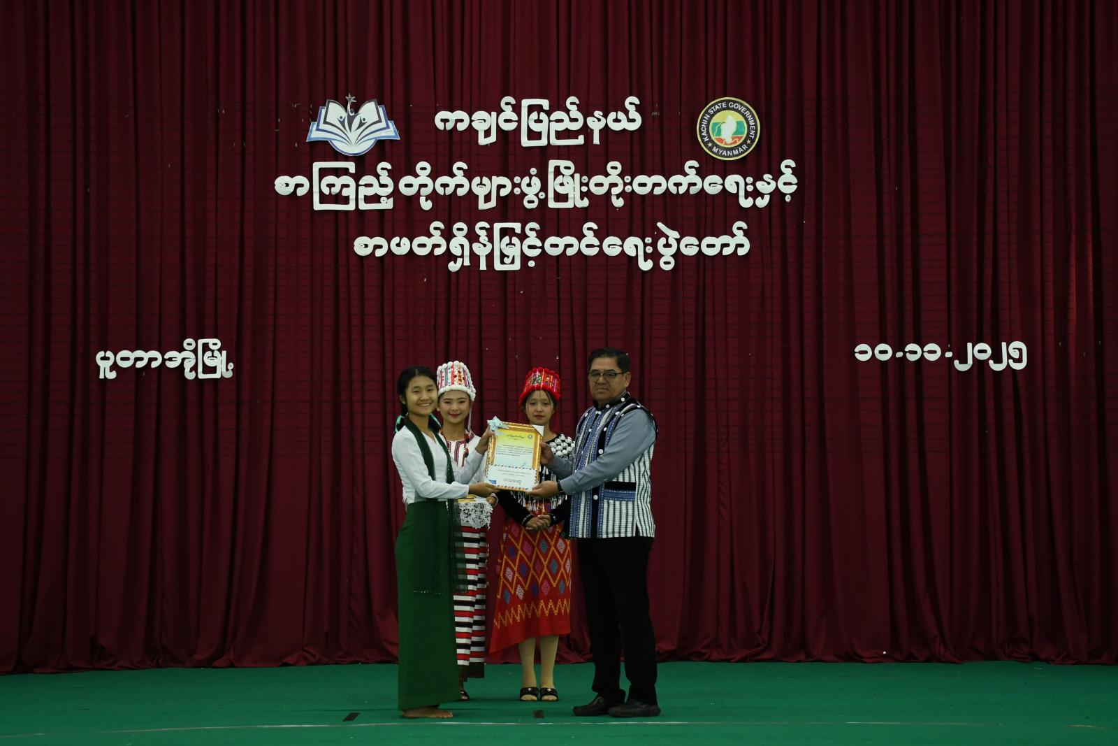 ယင်းနောက် ကျောင်းသား/ ကျောင်းသူလေးများက ပညာဘဏ်တိုက် စာကြည့်တိုက်တေးသီ ချင်းသရုပ်ဖော်အကအလှများဖြင့် ဖျော်ဖြေတင်ဆက်မှုကို ကြည့်ရှုအားပေးခဲ့ကြပြီး ဂုဏ်ပြုချီးမြှင့်ခြင်း အစီအစဉ်ကို ဆက်လက်ကျင်းပရာ ပြည်နယ်ဝန်ကြီးချုပ်နှင့် ဇနီး၊ ပြည်နယ်အစိုးရအဖွဲ့ဝင် ဝန်ကြီး များနှင့် ဌာနဆိုင်ရာတာဝန်ရှိသူများက ကျောင်းစာကြည့်တိုက်အတွက် သုတ/ ရသစာအုပ်စာစောင် များကို လည်းကောင်း၊ စာစီစာကုံး၊ ပန်းချီ၊ ကျပန်း၊ ကဗျာရွတ်ဆိုပြိုင်ပွဲများတွင် ပထမ၊ ဒုတိယနှင့် တတိယဆုရရှိသူများအား လည်းကောင်း၊ လူငယ်စကားဝိုင်းဆွေးနွေးပွဲတွင် ဆွေးနွေးပေးကြသူများ အား ဂုဏ်ပြုမှတ်တမ်းလွှာနှင့် ဂုဏ်ပြုချီးမြှင့်ငွေများကို လည်းကောင်း၊ ဖျော်ဖြေရေးအဖွဲ့များအတွက် ချီးမြှင့်ထောက်ပံ့ငွေများကို လည်းကောင်း အသီးသီးပေးအပ်ချီးမြှင့်ခဲ့ကြသည်။ ဆက်လက်၍ ကျောင်းသား/ ကျောင်းသူလေးများ၏ ဂျိမ်းဖောပွဲတော် တေးသီချင်းသရုပ်ဖော် အကအလှများဖြင့် ကပြဖျော်ဖြေမှုကို ကြည့်ရှုအားပေးခဲ့ကြသည်။