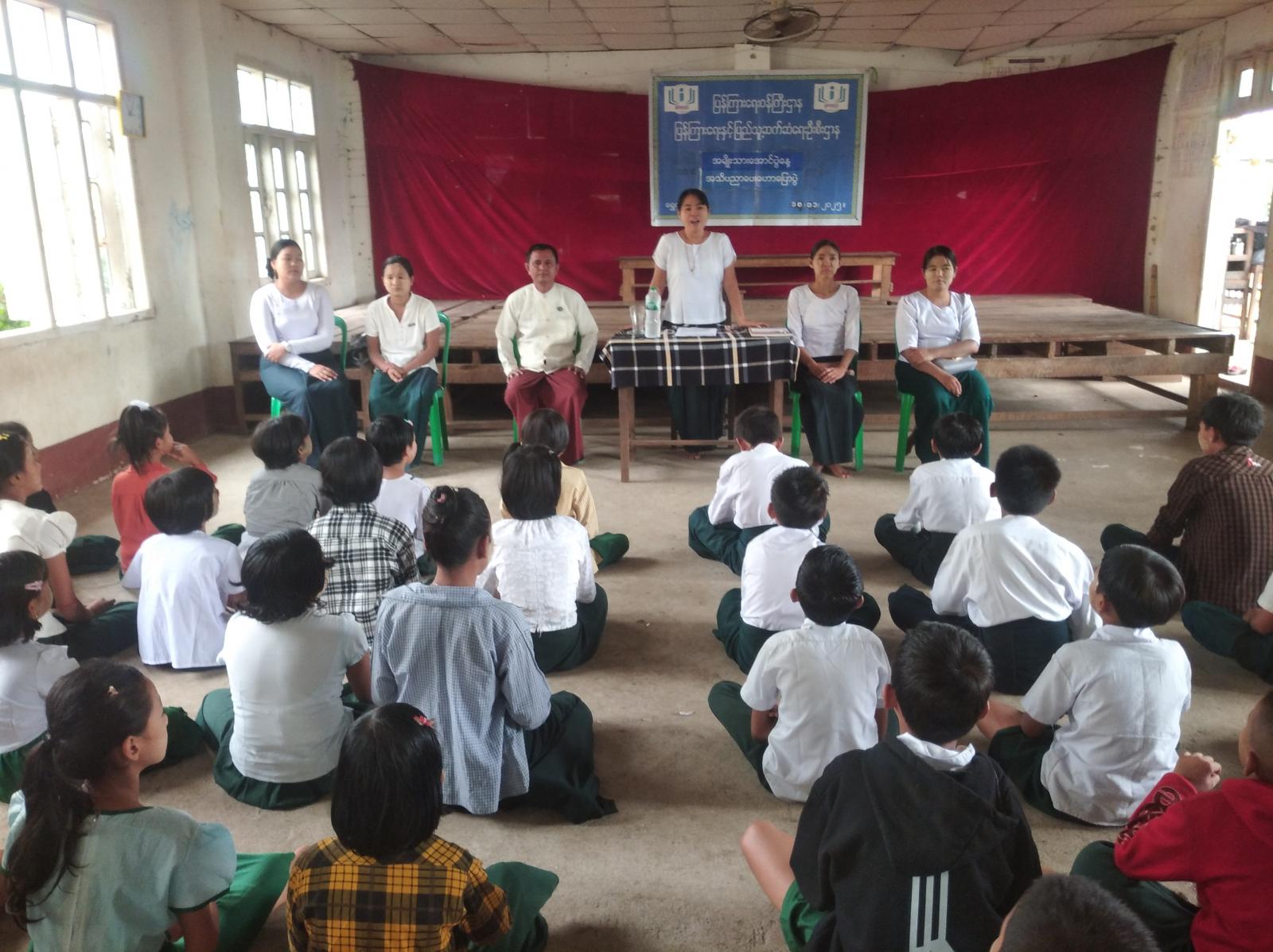 ရှေးဦးစွာ ဟောပြောပွဲတွင် တာဝန်ခံ ကျောင်းအုပ်ဆရာမကြီး ဒေါ်ဌေးဌေးလှက အဖွင့်အမှာစကားပြောကြားပြီး ရွှေကျင်မြို့နယ် ပြန်ကြားရေးနှင့်ပြည်သူ့ဆက်ဆံရေးဦးစီးဌာနမှ မြို့နယ်ဒုတိယဦးစီးမှူး ဦးမျိုးငြိမ်းက အမျိုးသားနေ့ ပေါ်ပေါက်လာပုံသမိုင်းကြောင်း၊ အမျိုးသားရေးစိတ်ဓာတ်အခန်းကဏ္ဍအရေးကြီးပုံ၊ လိုက်နာကျင့်ဆောင်သင့်သည့် မျိုးချစ်စိတ်ဓာတ် အကြောင်းအရာများကို ဟောပြောခဲ့သည်။