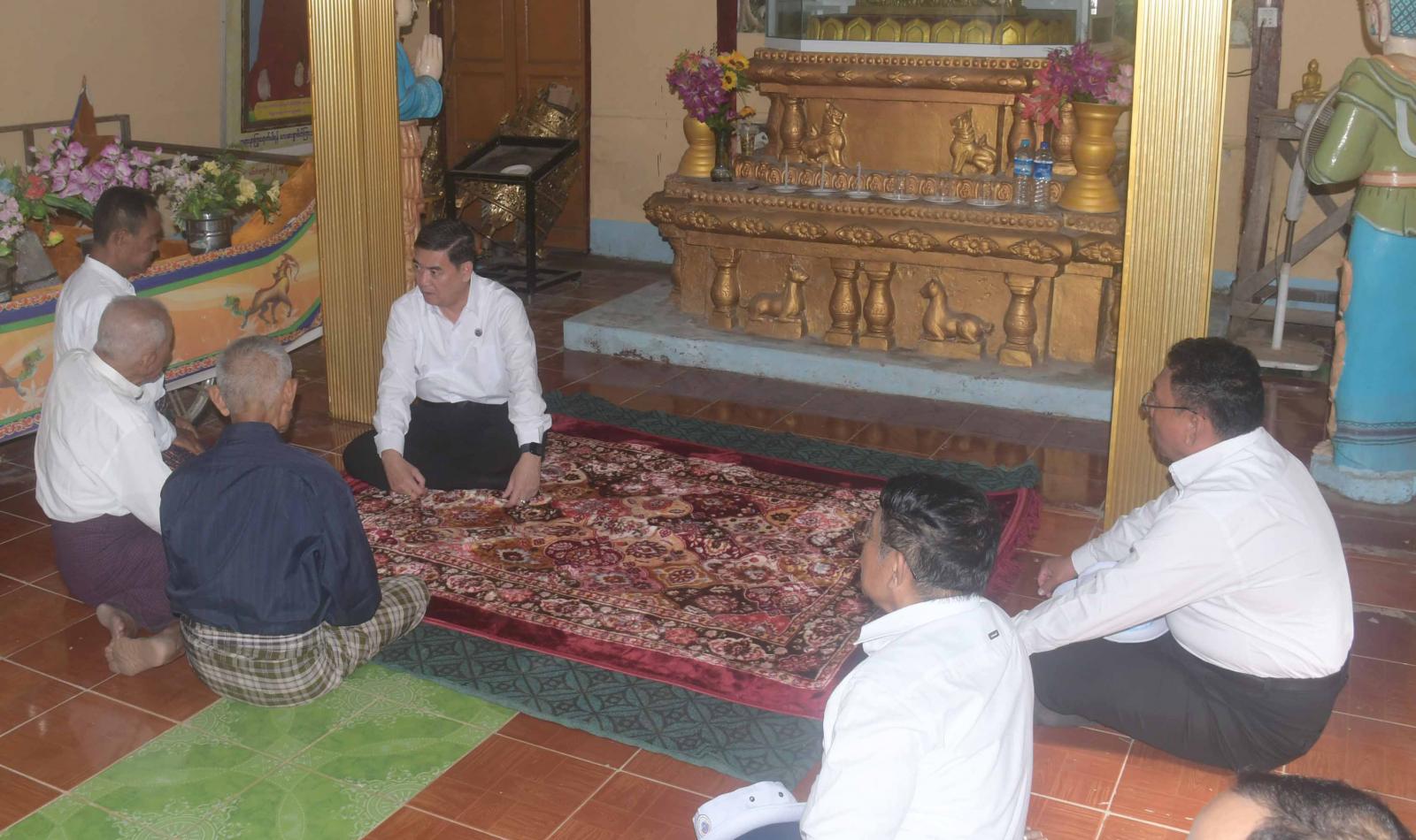 ထို့နောက် ရခိုင်ပြည်နယ်ဝန်ကြီးချုပ်နှင့်အဖွဲ့သည် စစ်တွေမြို့၊ မင်းဂံရပ်ကွက် ဓမ္မာရုံအားပြုပြင်မွမ်းမံခြင်းလုပ်ငန်းဆောင်ရွက်နိုင်ရေး သွားရောက်ကြည့်ရှုစစ်ဆေးကြရာ စစ်တွေခရိုင်စီမံခန့်ခွဲရေး အုပ်ချုပ်ရေးကော်မတီဥက္ကဋ္ဌနှင့် တာဝန်ရှိသူများကလိုက်လံရှင်းလင်းတင်ပြကြသည်။ တင်ပြချက်များအပေါ် ပြည်နယ်ဝန်ကြီးချုပ်ကလိုအပ်သည်များကို တာဝန်ရှိသူများနှင့် ပေါင်းစပ်ပြီးညှိနှိုင်းပေးခဲ့သည်။