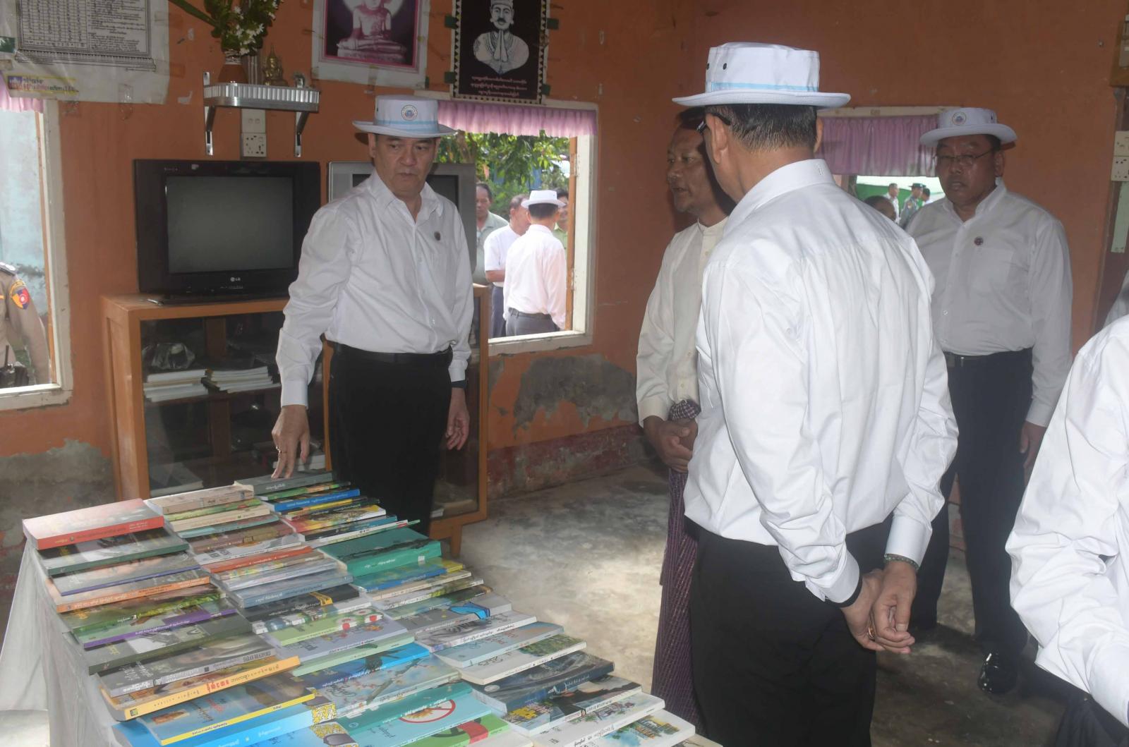 ယင်းနောက် ပြည်နယ်ဝန်ကြီးချုပ်နှင့်အဖွဲ့သည် မင်းဂံဈေးသို့သွားရောက်ကြပြီး ဈေးအတွင်းလှည့်လည်ကြည့်ရှုကြရာ ဈေးသူ၊ ဈေးသားများနှင့် ဈေးဝယ်လာကြသူများအား ရင်းရင်းနှီးနှီးတွေ့ဆုံးနှုတ်ကြသည်။ ထို့နောက် ပြည်နယ်ဝန်ကြီးချုပ်နှင့်အဖွဲ့သည် မင်းဂံရပ်ကွက် အုပ်ချုပ်ရေးမှူးရုံးနှင့် ခန့် စာကြည့်တိုက်တို့အား သွားရောက်ကြည့်ရှုကြရာ ရပ်ကွက်အုပ်ချုပ်ရေးမှူးနှင့် စာကြည့်တိုက်မှူးတို့က စာကြည့်တိုက်အတွင်း ကျောင်းသား၊ ကျောင်းသူများ၊ ရပ်ကွက်နေပြည်သူများ စာအုပ်၊ စာပေများလာရောက်ဖတ်ရှုနေမှု၊ စာကြည့်တိုက်ရှင်သန်ဖွံ့ဖြိုးနေမှုနှင့် စာကြည့်တိုက်အတွက် လိုအပ်ချက်များကို ရှင်းလင်းတင်ပြကြသည်။ တင်ပြချက်များအပေါ် ပြည်နယ်ဝန်ကြီးချုပ်က လိုအပ်သည်များကိုမှာကြားပြီး စာကြည့်တိုက်အတွက် သုတ၊ ရသစာအုပ်စာစောင်များ ပေးအပ်လှူဒါန်းခဲ့ကြောင်း သတင်း ရရှိသည်။