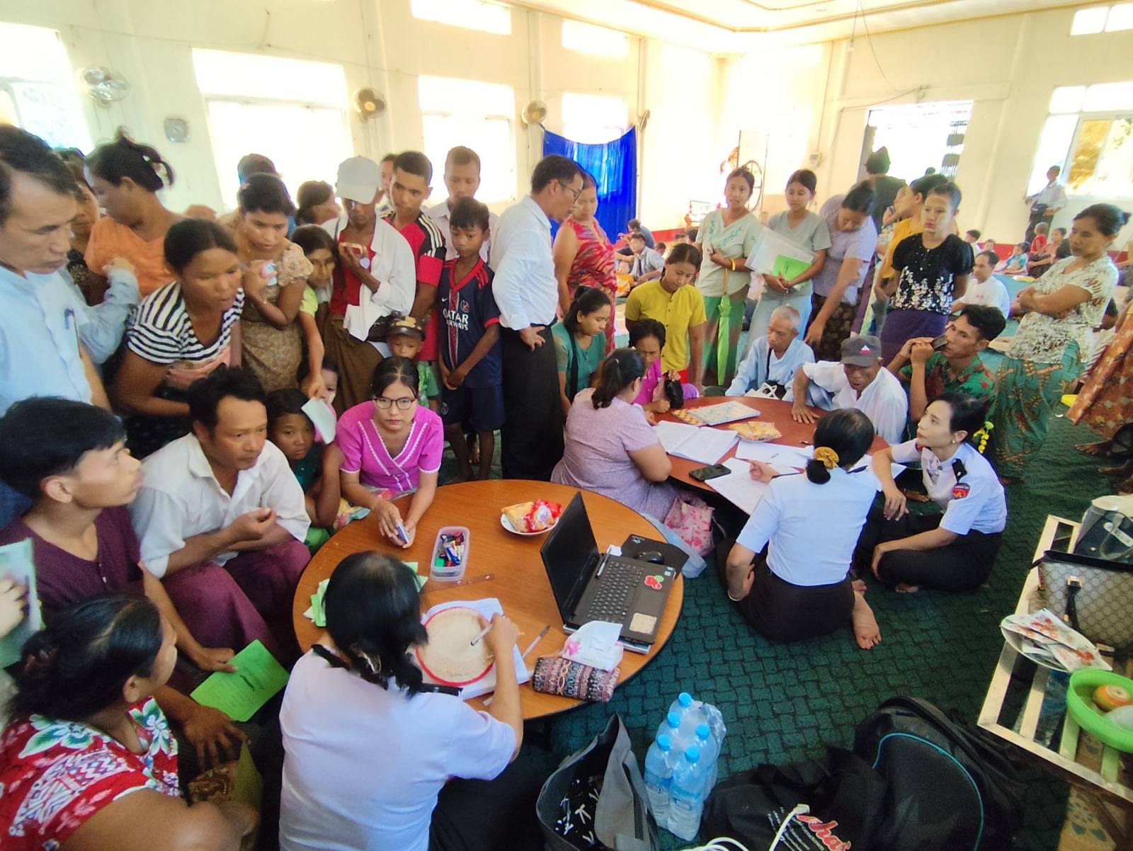 ထိုသို့ဆောင်ရွက်ပေးရာတွင် ယမန်နေ့ညနေပိုင်းက သန်လျင်မြို့နယ် လက်ယက်စမ်းကျေးရွာအုပ်စု မြယာရိုးကျေးရွာရှိ ပြည်သူများအား ဘုန်းတော်ကြီးကျောင်းဓမ္မာရုံ၌ စုရပ်ထားရှိကာ မြို့နယ်လဝကဦးစီးဌာနမှူး ဦးဇွဲမင်းဦးနှင့်ဝန်ထမ်းများက အိမ်ထောင်စုစာရင်းမရှိသူများအား (M)သင်္ကေတဖြင့် ဆောင်ရွက်ပေးခဲ့သည်။