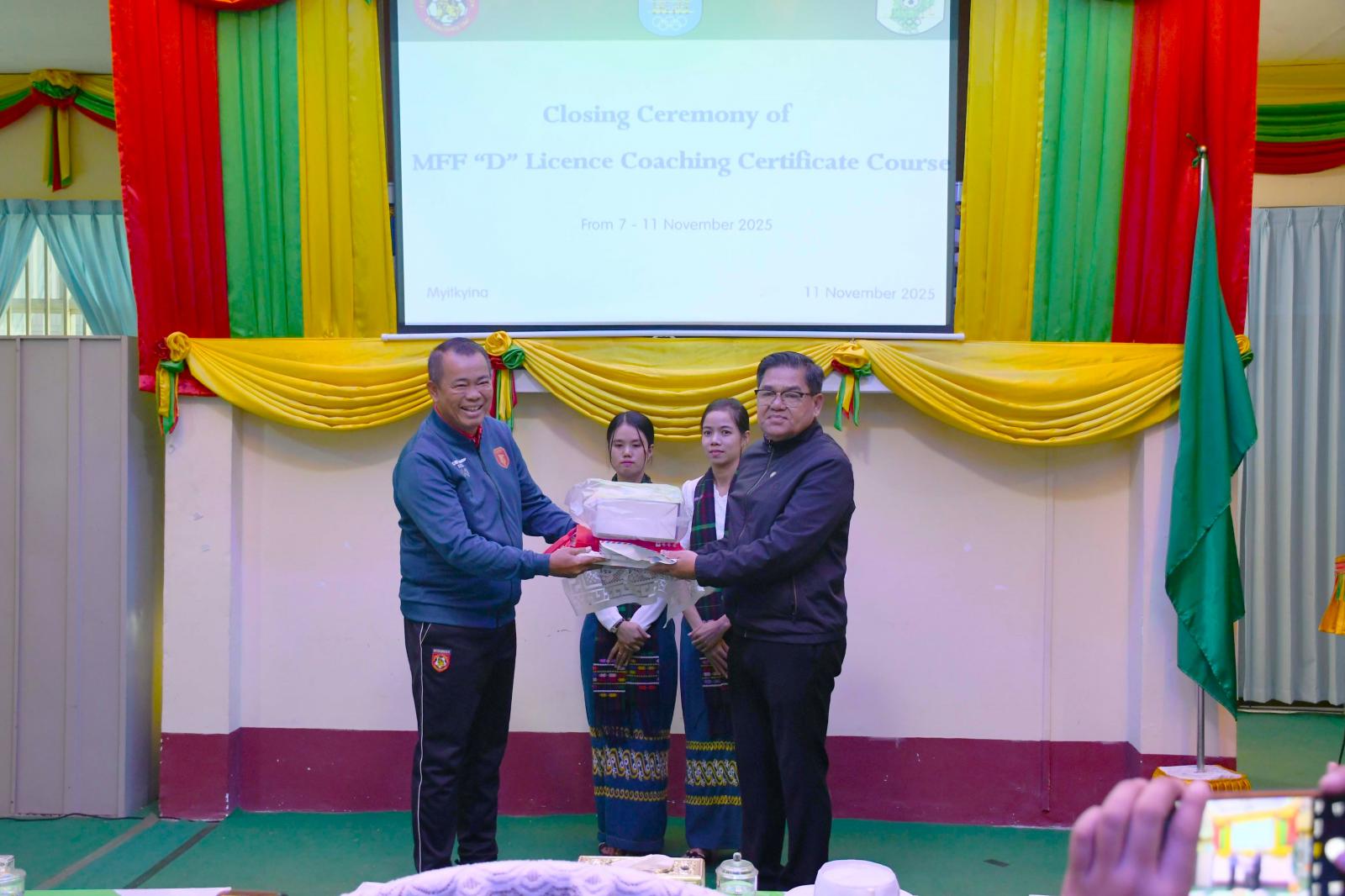 ထို့အပြင် ပြည်နယ်ဝန်ကြီးချုပ်သည် နံနက်ပိုင်းကလည်း မြစ်ကြီးနားမြို့ ပြည်သူ့အားကစား ကွင်းအတွင်းရှိ ပြည်နယ်အားကစားနှင့်ကာယပညာဦးစီးဌာနရုံး၌ ကျင်းပပြုလုပ်သည့် မြန်မာနိုင်ငံ ဘောလုံးအဖွဲ့ချုပ် အသိအမှတ်ပြု D လိုင်စင်နည်းပြသင်တန်းအတွက် သင်တန်းဆင်းပွဲသို့ တက် ရောက်ခဲ့ကြပြီး ပြည်နယ်ဝန်ကြီးချုပ်က အမှာစကားပြောကြားသည်။ ထို့နောက် ပြည်နယ်ဝန်ကြီးချုပ်က သင်တန်းနည်းပြများအတွက် ကျေးဇူးတင်ဂုဏ်ပြုမှတ် တမ်းလွှာ၊ ဂုဏ်ပြုချီးမြှင့်ငွေနှင့် အမှတ်တရဂုဏ်ပြုလက်ဆောင်တို့ကို ပေးအပ်ချီးမြှင့်ခဲ့ပြီး ပြည်နယ်လူမှုရေးရာဝန်ကြီးနှင့်တာဝန်ရှိသူများက သင်တန်းသားများအား သင်တန်းဆင်းလက်မှတ်များကို ပေးအပ်ချီးမြှင့်ရာခဲ့ကြောင်း သိရသည်။