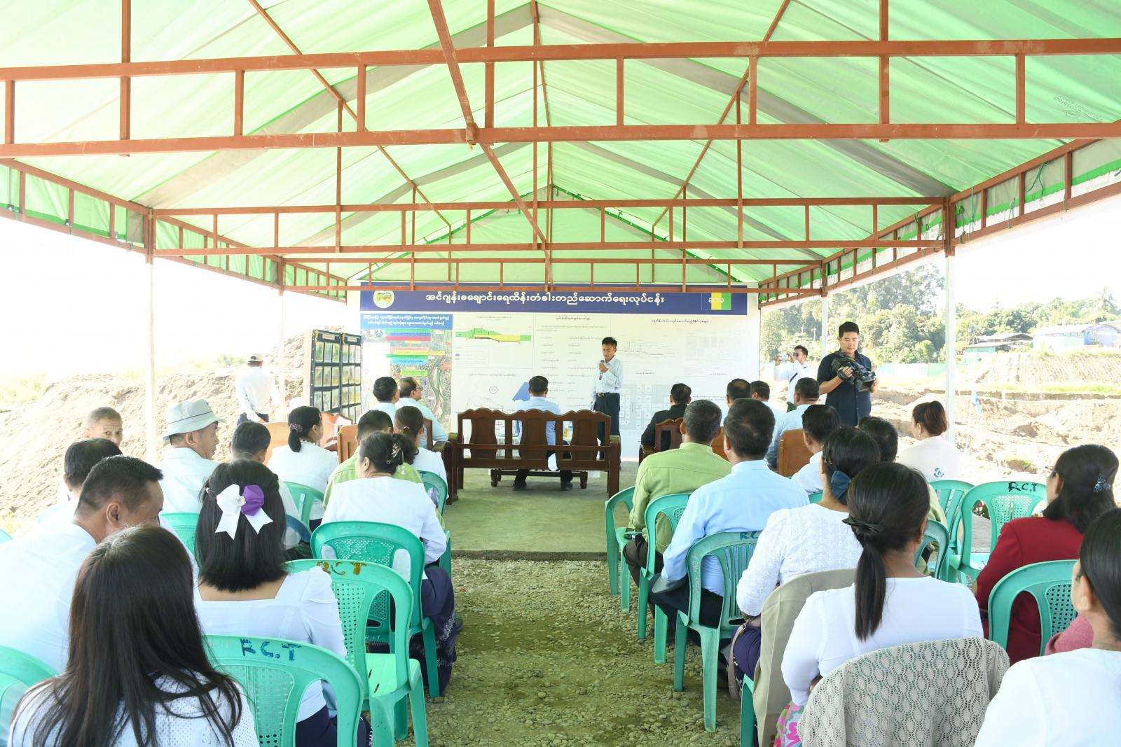 ထို့နောက် စီမံကိန်းဧရိယာအတွင်း ကြမ်းခင်းကွန်ကရစ်လောင်းခြင်းလုပ်ငန်းများ ဆောင်ရွက်နေမှု အခြေအနေများနှင့် Block နေရာများအတွက် သံဆင်ခြင်း၊ အစားထိုးမြေနေရာဖို့ခြင်းလုပ်ငန်း များအပါအဝင် ချောင်းဟောင်းနေရာ မြေသားတမံပိတ်ခြင်းနှင့် ရပ်ကွက်နေပြည်သူများ သွား/လာမှု အဆင်ပြေစေရေး ယာယီချောင်းကူးသစ်သားတံတားသစ် တည်ဆောက်ထားရှိအခြေအနေများကို လှည့်လည်ကြည့်ရှုစစ်ဆေးခဲ့ကြသည်။