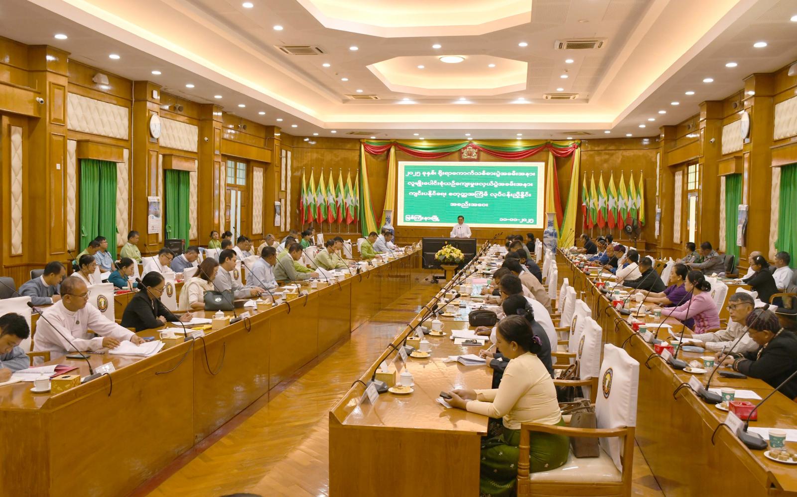 မွန်းလွဲပိုင်းတွင် ပြည်နယ်ဝန်ကြီးချုပ်သည် ပြည်နယ်ဝန်ကြီးများ၊ တာဝန်ရှိသူ များနှင့်အတူ မြို့နယ်စုပေါင်းရုံးဝင်းအတွင်းရှိ မနောရွှေပြည်ခန်းမ၌ ၂၀၂၅ ခုနှစ် ပါတီစုံဒီမိုကရေစီ အထွေထွေရွေးကောက်ပွဲအတွက် ဒုတိယအကြိမ် မဲဆန္ဒရှင်စာရင်းများ မှန်ကန်စွာထုတ်ပြန်နိုင်ရေး အတွက် ဆောင်ရွက်နေမှုကို ကြည့်ရှုအားပေးသည်။