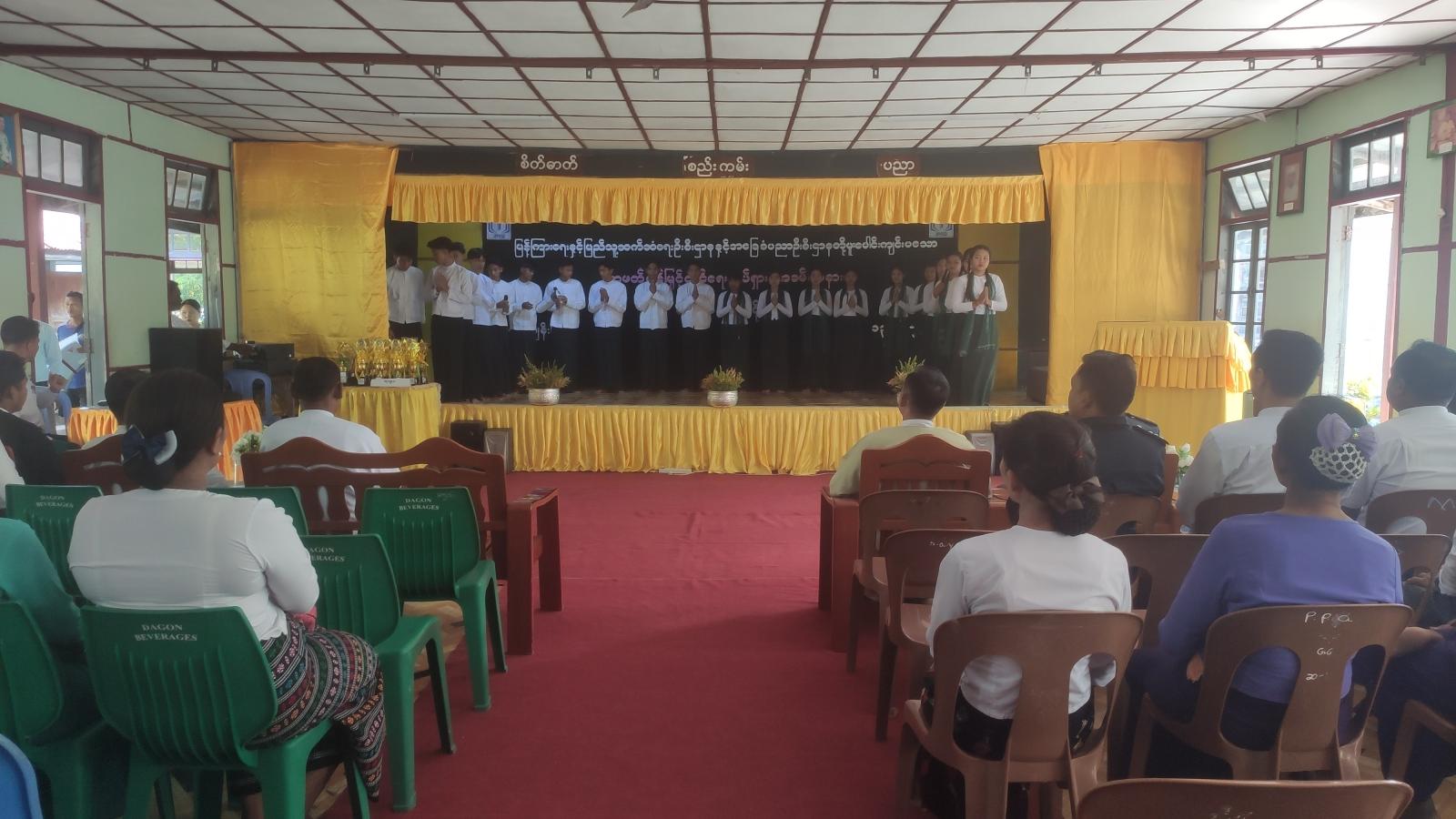 ထို့နောက် အဆိုပါစာဖတ်ရှိန်မြှင့်တင်ရေးလှုပ်ရှားမှု အခမ်းအနားတွင် ဆုရရှိသူများကို တာဝန်ရှိသူများမှ ဆုများပေးအပ်ခဲ့ကြောင်းသိရသည်။ ဆက်လက်၍ မြို့နယ်ပညာရေးမှူးဒေါ်ခင်အေးနိုင်မှ ကျေးဇူးတင်စကားပြောကြားပြီး ကျောင်းသား၊ကျောင်းသူများမှ လုလင်ငယ်သွေးသီချင်းဖြင့် ကပြဖျော် ဖြေခဲ့ကြောင်းသိရသည်။