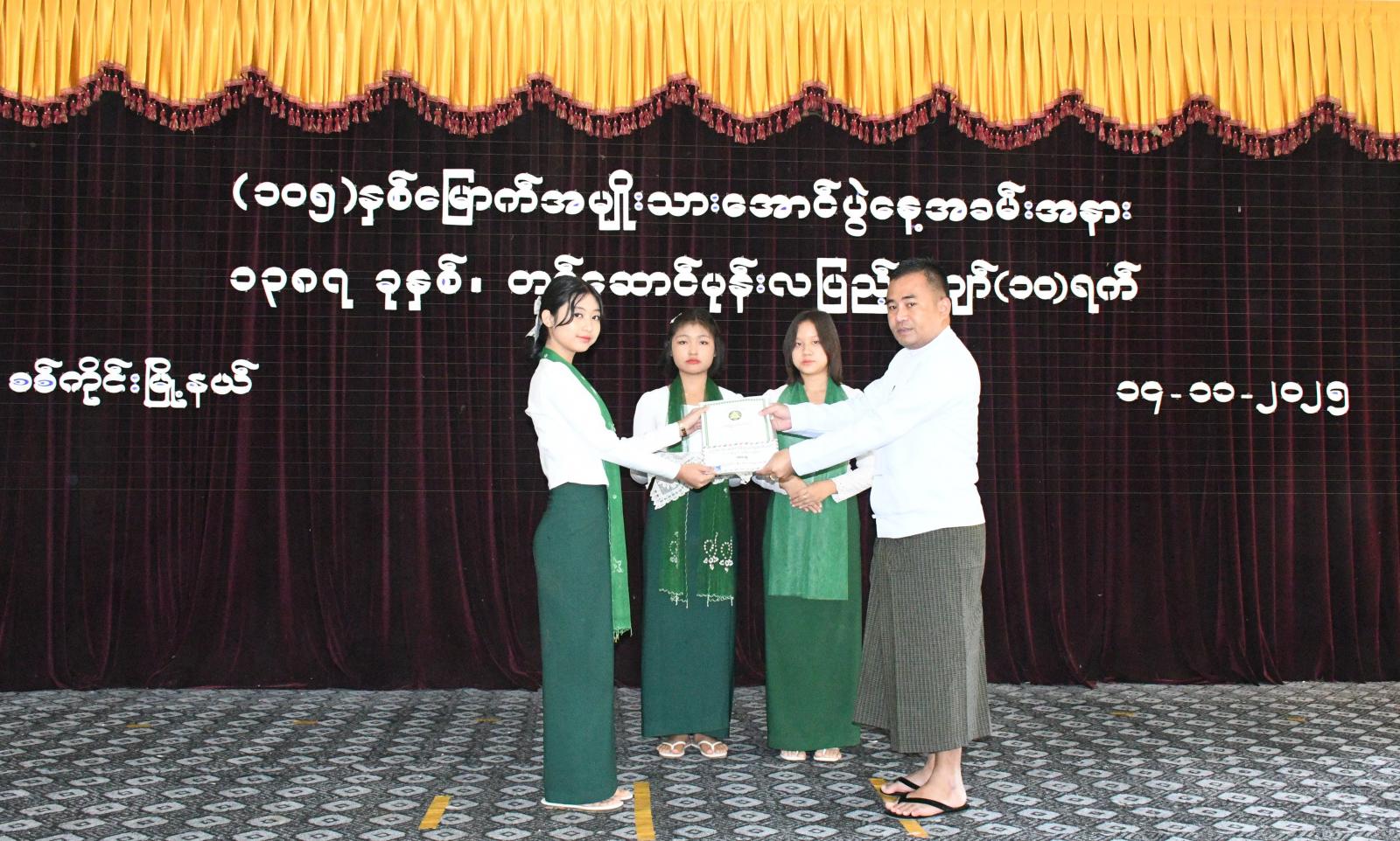 ထို့နောက် လူမှုရေးရာဝန်ကြီး ဦးညွန့်ဝင်းအောင်နှင့် တာဝန်ရှိသူများက အမျိုးသား အောင်ပွဲနေ့အထိမ်းအမှတ် စာစီစာကုံး၊ ကဗျာပြိုင်ပွဲများတွင် ဆုရရှိကြသော ကျောင်းသား/ ကျောင်းသူများအား ဆုများအသီးသီးပေးအပ်ချီးမြှင့်ခဲ့ကြကြောင်း သိရသည်။
