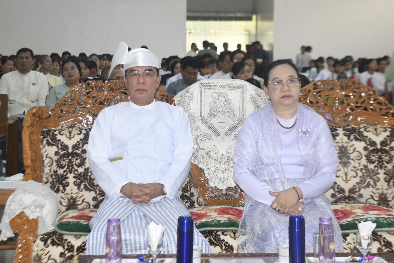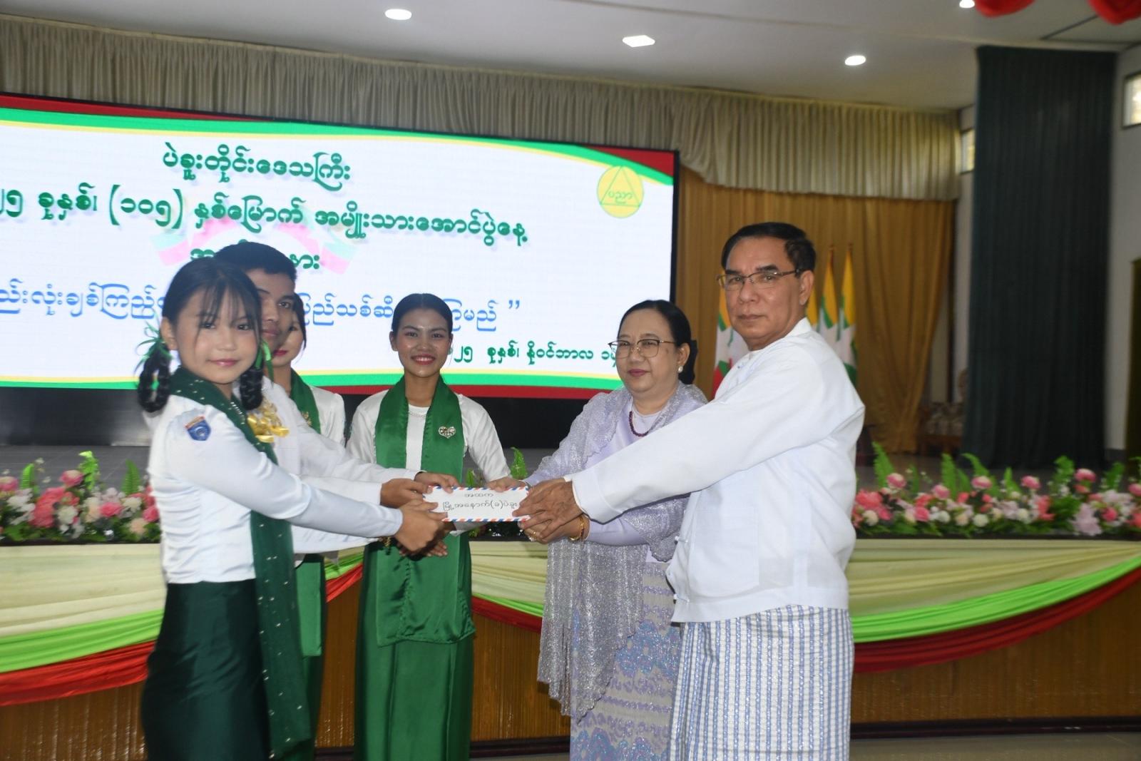 ထို့နောက် အခြေခံပညာအထက်တန်း-မြို့အနောက်(ခ)မှ ကျောင်းသား/သူများက “မြန်မာ့ကျောင်း” သီချင်းဖြင့် သီဆိုဖျော်ဖြေတင်ဆက်ခဲ့ရာ တိုင်းဒေသကြီး ဝန်ကြီးချုပ်နှင့် ဇနီးတို့က ဖျော်ဖြေတင်ဆက်ခဲ့ကြသည့် ကျောင်းသား/သူများအား ဂုဏ်ပြုဆုများ ချီးမြှင့်ပေးအပ်ခဲ့ကြောင်း သိရသည်။