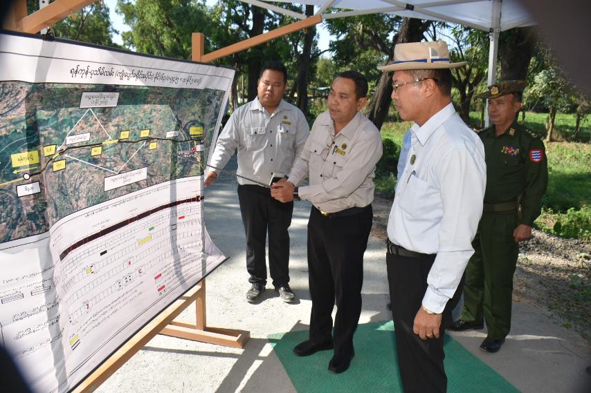 ဆက်လက်၍ တိုင်းဒေသကြီးဝန်ကြီးချုပ်နှင့်အဖွဲ့သည် ကျောင်းကုန်းမြို့နယ်၊ သဲကုန်ကျေးရွာသို့ သွားရောက်၍ သမဝါယမနှင့်ကျေးလက်ဖွံ့ဖြိုးရေးဝန်ကြီးဌာန၊ ကျောင်းကုန်းမြို့နယ် ကျေးလက်ဒေသဖွံ့ဖြိုးတိုးတက်ရေးဦးစီးဌာနမှ သဲကုန်ကျေးရွာကုန်ထုတ်လမ်း မြေသားလမ်းခင်းခြင်း ကျောက်ချောခင်းခြင်းနှင့် Box culvert (၂)စင်းတည်ဆောက်ခြင်းလုပ်ငန်း မြေသားလမ်းခင်းခြင်း (ဝ/၄.၆၉၇မိုင် x ၁၆' x ၄')၊ ကျောက်ချောခင်းခြင်း (ဝ/၁.၃၆မိုင် x ၁၂' x ၆')၊ Box culvert ၂ စင်း (၁၈' x ၅' x ၅') လုပ်ငန်းဆောင်ရွက်မှုအခြေအနေများကို ကြည့်ရှုစစ်ဆေးခဲ့ပြီး အရည်အသွေးပြည့်မီရေး၊ သတ်မှတ်ကာလအတွင်း ပြီးစီးစေရေးတို့ကို မှာကြားခဲ့ကြောင်း သိရသည်။
