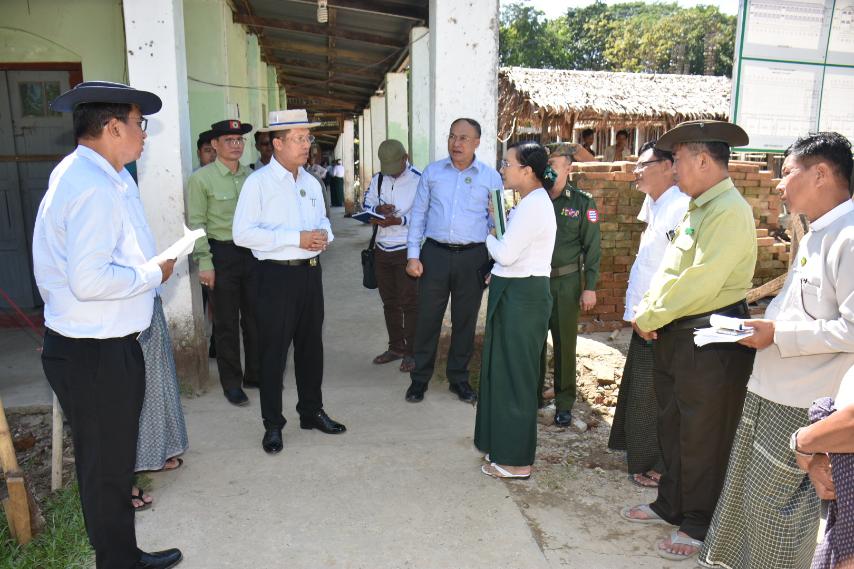 ဧရာဝတီတိုင်းဒေသကြီးဝန်ကြီးချုပ် ဦးတင်မောင်ဝင်းသည် တိုင်းဒေသကြီးအစိုးရအဖွဲ့ဝင်များ တာဝန်ရှိသူများနှင့်အတူ ယမန်နေ့မွန်းလွဲပိုင်းက ကျုံပျော်မြို့၊ အမှတ် (၁) အခြေခံပညာအထက်တန်းကျောင်းသို့ သွားရောက်၍ (၁၄၀ ပေ × ၃၀ ပေ + ၇၀ ပေ × ၃၀ ပေ) RCC နှစ်ထပ် (Lပုံစံ) ကျောင်းဆောင်သစ်ဆောက်လုပ်နေမှုများကို ကြည့်ရှုစစ်ဆေးခဲ့ပြီး အဆောက်အဦ အရည်အသွေးပြည့်မီရေး၊ သတ်မှတ်ကာလအတွင်း ပြီးစီးစေရေးတို့အတွက် လူအင်အား၊ စက်အင်အားများဖြင့် အဆိုင်းခွဲ၍ ဆောင်ရွက်ရန် မှာကြားခဲ့ပြီး ကျောင်းအုပ်ဆရာမကြီးက လိုအပ်ချက်တင်ပြမှုများအပေါ် တာဝန်ရှိသူများနှင့် ညှိနှိုင်းပေါင်းစပ်ဆောင်ရွက်ပေးခဲ့သည်။