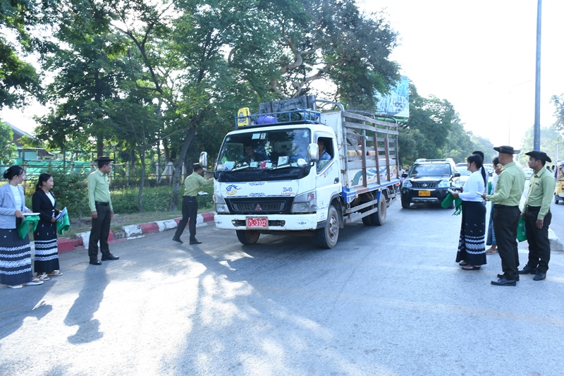 ထိုသို့ ပလတ်စတစ်/ကြွပ်ကြွပ်အိပ် မသုံးစွဲရနေ့ (Monday Stop) လှုပ်ရှားမှုအဖြစ် ဆောင်ရွက်ရာ၌ မြို့နယ်အထွေထွေအုပ်ချုပ်ရေးဦးစီးဌာနမှ ဒုတိယဦးစီးမှူး ဦးစိုးလင်းထွန်းနှင့်ဝန်ထမ်းများ၊ ခရိုင်ပတ်ဝန်းကျင်ထိန်းသိမ်းရေးဦးစီးဌာနမှ ဒုတိယဦးစီးမှူး ဦးလွှမ်းနိုင်နှင့်ဝန်ထမ်းများ၊ ခရိုင်ပြန်ကြားရေးနှင့်ပြည်သူ့ဆက်ဆံရေးဦးစီးဌာနမှ ဦးစီးအရာရှိ ဒေါ်ခင်နှင်းရီနှင့်ဝန်ထမ်းတို့က ခရီးသွားပြည်သူများနှင့် ဈေးဝယ်သူများအား “ကမ္ဘာတစ်ဝန်း ပလတ်စတစ်ညစ်ညမ်းမှုအဆုံးသတ်ရေး စုပေါင်းအားဖြင့် ဆောင်ရွက်ပေး”၊ “ပလတတ်စတစ်ညစ်ညမ်းမှုအန္တရာယ်”၊ အပြည်ပြည်ဆိုင်ရာ သန့်ရှင်းသောလေထုနေ့” စသည့် အသိပညာပေးလက်ကမ်း စာစောင်များနှင့် ကြွပ်ကြွပ်အိတ်အစားထိုး ဈေးဝယ်အိပ်များ ဖြန့်ဝေပေးခဲ့ကြောင်း သိရသည်။