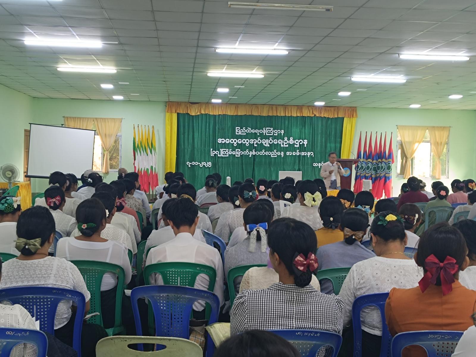 ၂၀၂၅ ခုနှစ် ဒီဇင်ဘာ ၂၈ ရက်တွင် ကျင်းပမည့် ပါတီစုံဒီမိုကရေစီ အထွေထွေရွေးကောက်ပွဲ အောင်မြင်စွာ ကျင်းပနိုင်ရေးအတွက် မဲရုံလုပ်ငန်းများပိုင်နိုင်စွာ ဆောင်ရွက်နိုင်စေရန်ရည်ရွယ်၍ မဲရုံမှူး၊ ဒုမဲရုံမှူးသင်တန်းကို နိုဝင်ဘာ ၁၈ ရက်နေ့ မွန်းလွဲ(၁) နာရီတွင် မြို့နယ်အထွေထွေအုပ်ချုပ်ရေးဦးစီးခန်းမ၌ ကျင်းပခဲ့သည်။