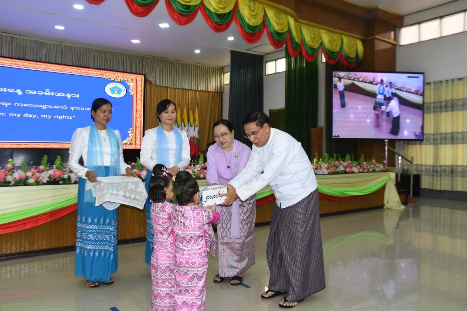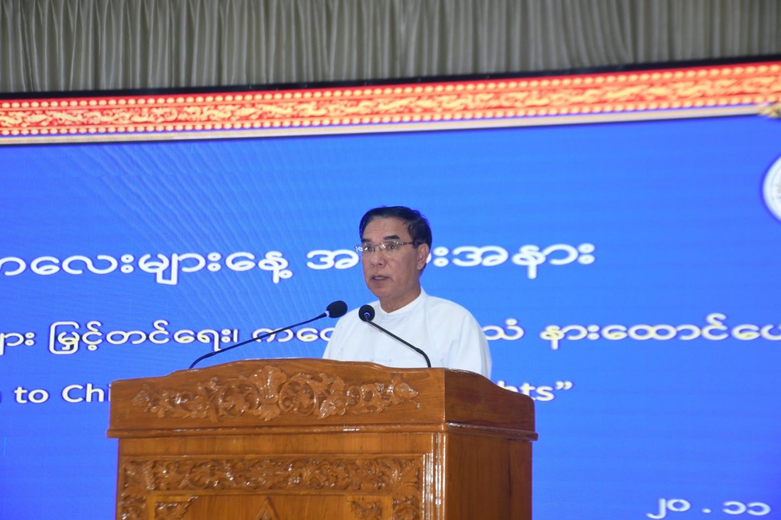 ထို့နောက် ပဲခူးတိုင်းဒေသကြီးဝန်ကြီးချုပ် ဦးမျိုးဆွေဝင်းက ကလေးသူငယ်များဟာ အနာဂတ်ကို ပုံဖော်ထုဆစ်မည့်သူများဖြစ်၍ နည်းမှန်လမ်းမှန်ဖြင့် ငယ်စဉ်ကတည်းက စနစ်တကျ ပြုစုစောင့်ရှောက်သွားဖို့ လိုအပ်မှာဖြစ်ကြောင်း၊ ကလေးသူငယ်များကို နိုင်ငံတော်က အားထားရတဲ့ လူ့စွမ်းအားအရင်းအမြစ်များအဖြစ် ကြီးပြင်းလာစေရန်အတွက် အသက်ရှင်သန်ခွင့်၊ ဖွံ့ဖြိုးတိုးတက်ခွင့်၊ ကာကွယ်စောင့်ရှောက်ခံပိုင်ခွင့်နှင့် ပါဝင်ဆောင်ရွက်ခွင့်တို့ကို အပြည့်အဝရရှိအောင် ဖြည့်ဆည်းဆောင်ရွက်ပေးသွားရမှာဖြစ်ကြောင်း၊ ကလေးသူငယ်များအတွက် ကျန်းမာရေးဆိုင်ရာအခွင့်အရေး၊ ပညာရေးဆိုင်ရာအခွင့်အရေး၊ ကလေးလူငယ်များ အလုပ်လုပ်ကိုင်ခြင်းနှင့် အဆိုးဝါးဆုံးပုံစံဖြင့် အလုပ်ခိုင်းစေခြင်း၊ မသန်စွမ်းကလေးသူငယ်များ/ ကလေးသူငယ်များအပေါ် အကြမ်းဖက်မှုမှ ကာကွယ်စောင့်ရှောက်ခြင်း စသည့်အခွင့်အရေးများကို ဌာနဆိုင်ရာများ၊ အစိုးရမဟုတ်သော ပြည်တွင်း/ပြည်ပ အသင်းအဖွဲ့များမှ ပူးပေါင်းဖော်ဆောင်ပေးသွားရမှာဖြစ်ကြောင်း၊ ၂၀၂၅ ခုနှစ်၊ ကမ္ဘာ့ကလေးများနေ့ ဆောင်ပုဒ်အတိုင်း ကလေးသူငယ်များ၏ စကားသံများကို များများနားထောင်ပြီး ကလေးသူငယ်တစ်ဦးချင်းစီတိုင်း၏ လိုအပ်ချက်များဖော်ဆောင်ပေးခြင်း၊ အခွင့်အရေးမြှင့်တင်ပေးခြင်းနှင့် အကျိုးစီးပွားရရှိခံစားနိုင်စေရေး ဝိုင်းဝန်းဖော်ဆောင်ပေးကြစေလိုကြောင်း ပြောကြားခဲ့သည်။